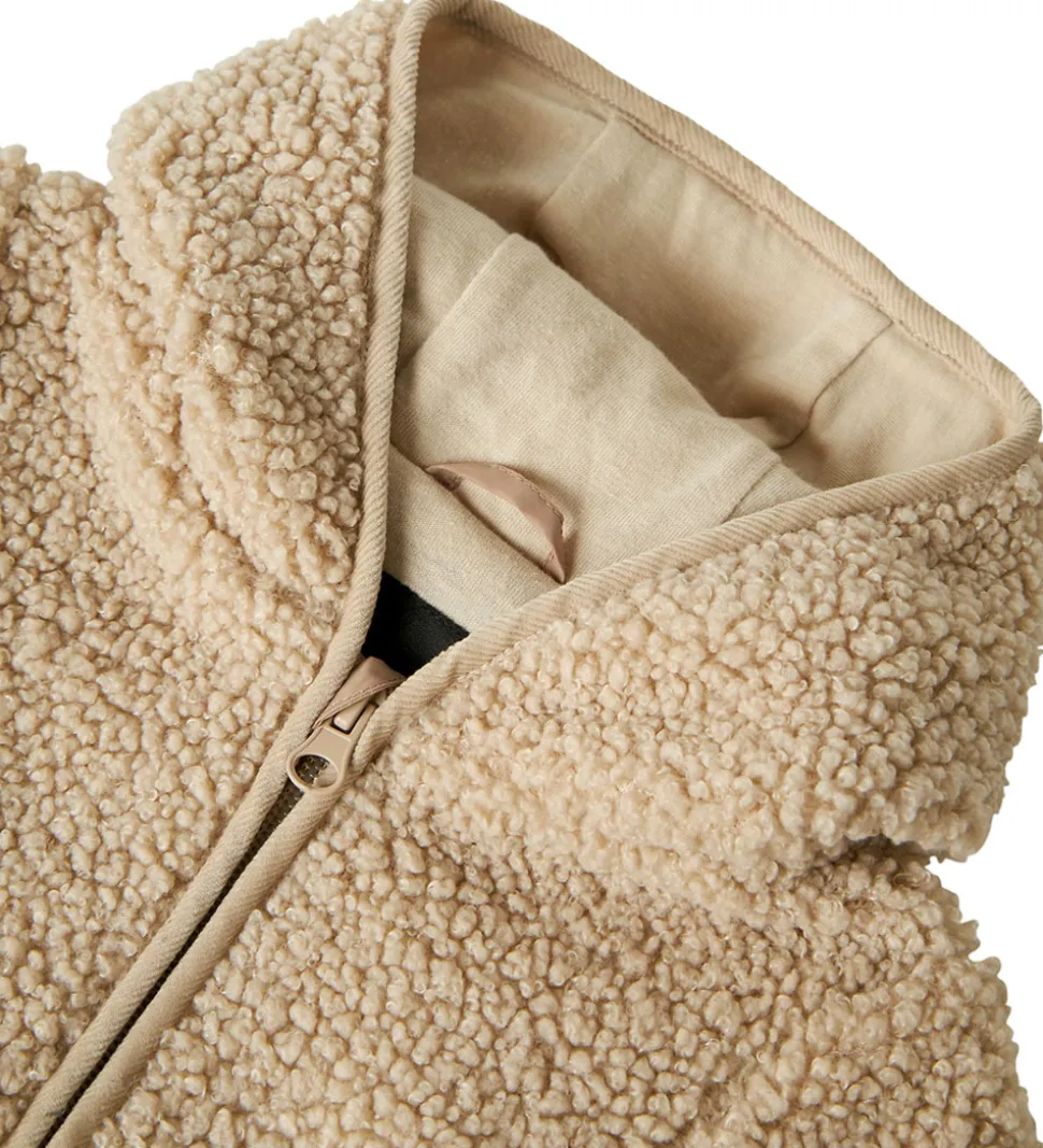 Elegant Name It køredragt i en lys beige nuance. Køredragten har en blød teddy-struktur, der fremhæver det tidløse design.