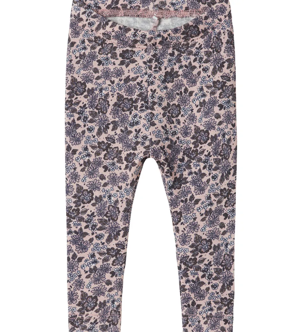 Charmerende Name It leggings i lyslilla med et smukt blomstermotiv i lilla nuancer. Name It leggingsene har en elastisk talje, der giver en god pasform.