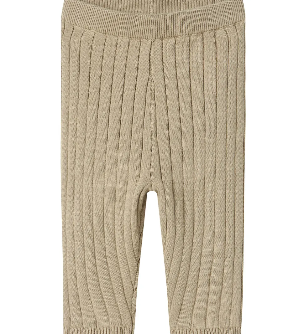 Smukke Name It leggings i beige strik med ribstruktur. Name It leggingsene har en elastisk talje, hvilket sikrer en behagelig pasform.
