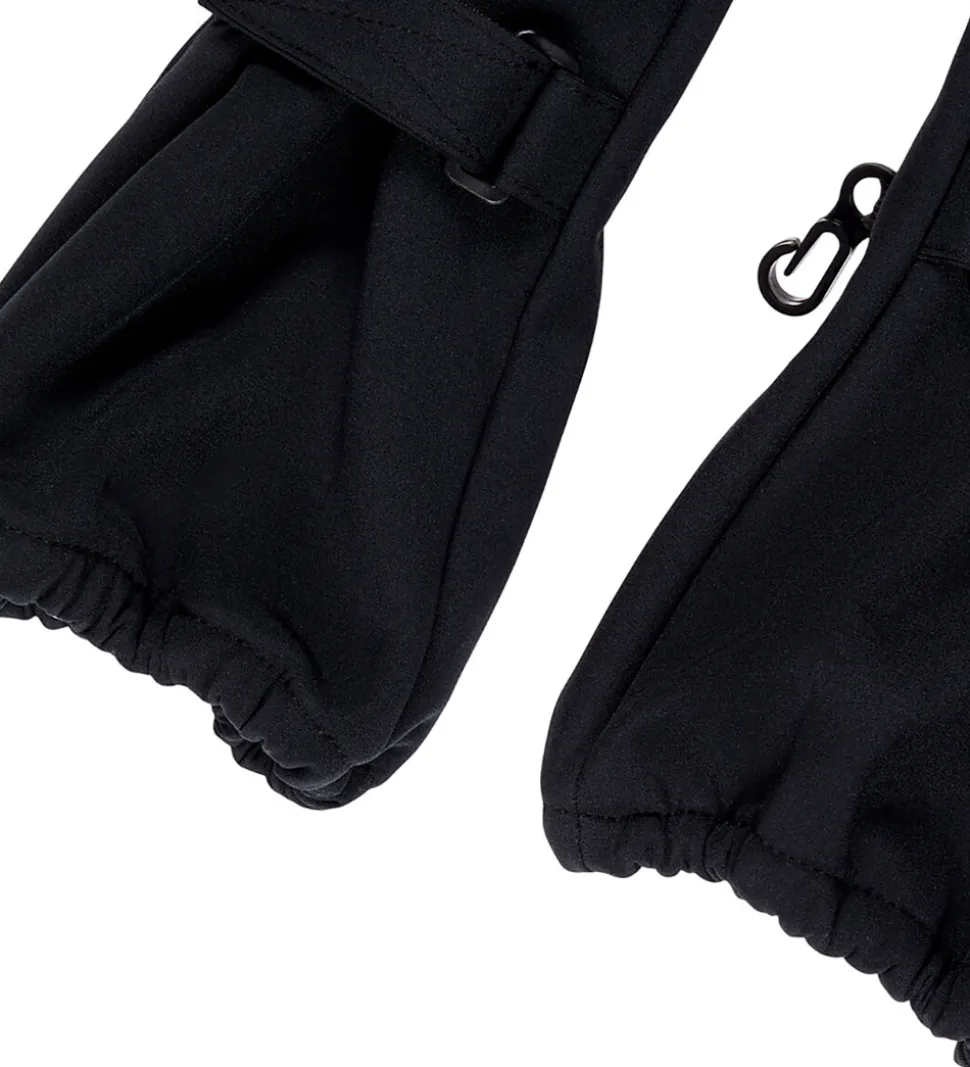 Name It lufferne har en smal elastikkant, og de kan strammes ind omkring håndleddet med velcro. Ved fingerspidserne er der et praktisk refleksprint, og på indersiden er der blødt fleece.
