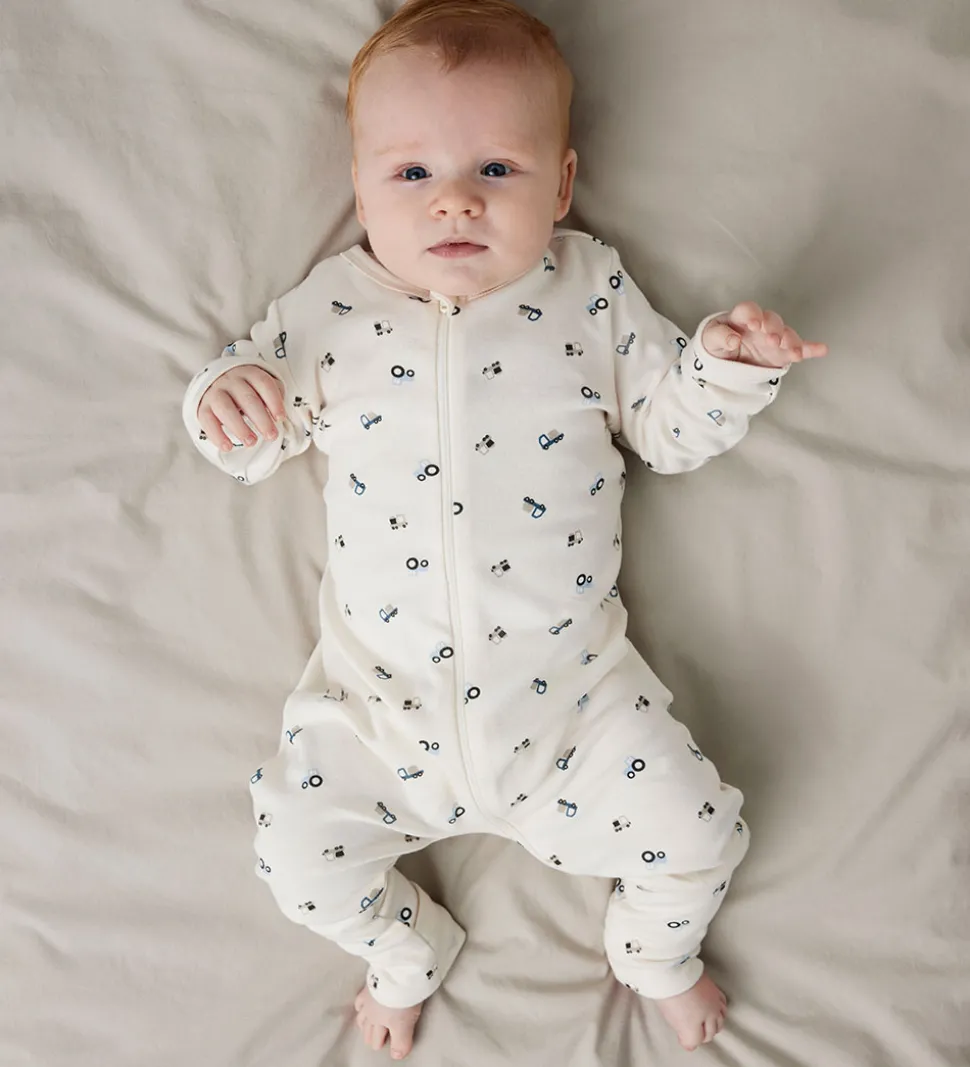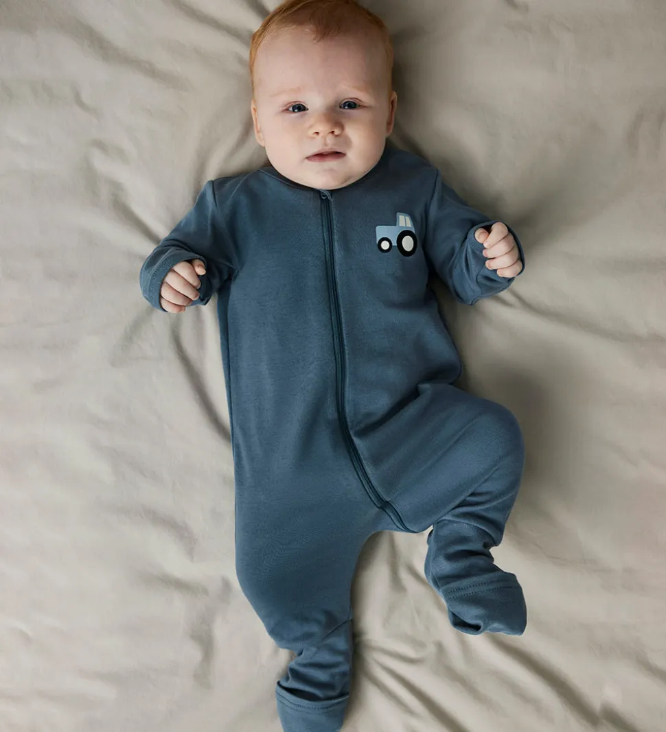 Name It natdragterne har lange ærmer og en rund halsudskæring. De åbnes fortil med en lynlås med hagebeskytter og indvendig stolpe, og som starter i halsåbningen og slutter på venstre ben. Som en smart detalje kan natdragterne bukkes op om fødderne, hvis det ønskes. De er lavet i en strækbar bomuldskvalitet.
