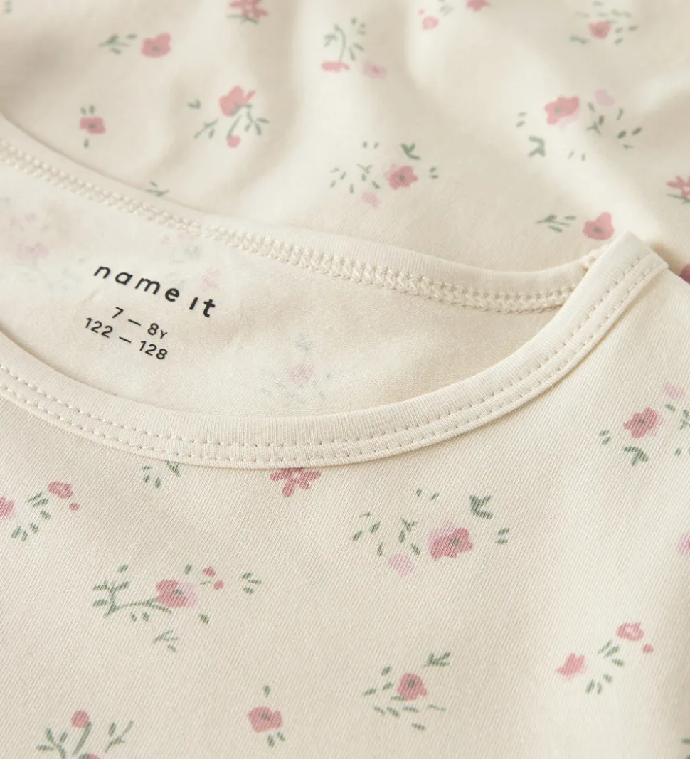 Delikat Name It natkjole i lysebeige med et fint blomstermønster i rosa nuancer. Natkjolen har lange ærmer og en rund halsudskæring, som sikrer en behagelig pasform. Det simple design gør natkjolen fra Name It velegnet til en rolig nat.