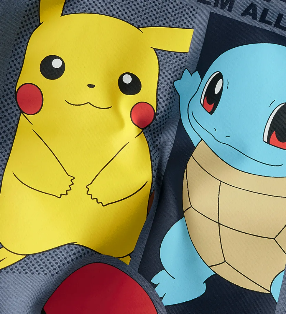 Flot Name It nattøj i en støvet, blå nuance bestående af natbluse og et par natbukser. Name It sættet har et stort print af Pikachu og Squirtle på fronten samt et Pokéball-motiv, der gør det sjovt og farverigt.