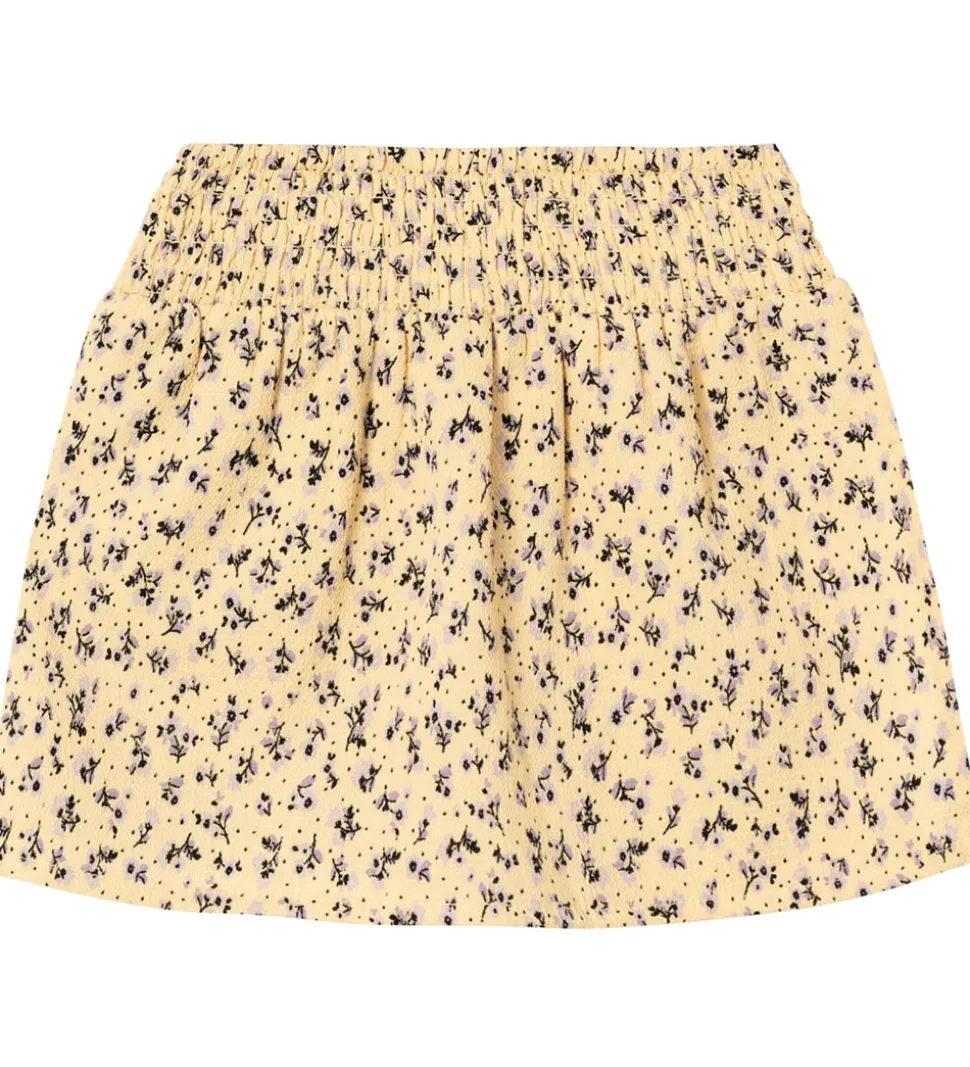 Fin Name It nederdel i en lys nuance med et delikat blomstermønster i lilla og sort.