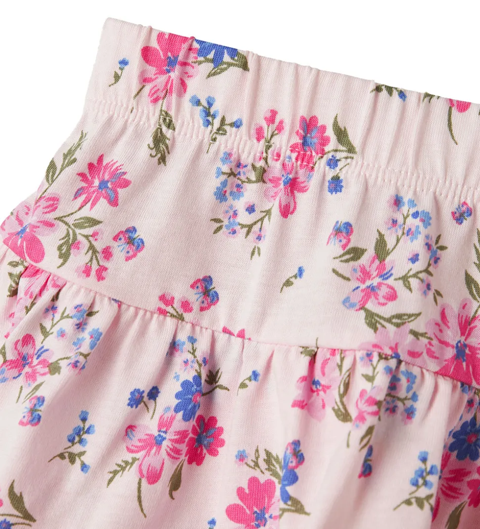 Elegant Name It nederdel i lys rosa med et smukt allover blomsterprint i lyserøde, grønne og blå nuancer.