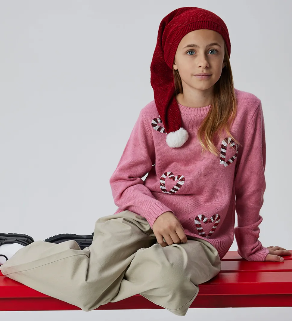 Smart Name It nissehue i rød med glimmer og en hvid kvast på toppen. Name It nissehuen har en strikket struktur med en ribkant ved åbningen, som giver en god pasform.