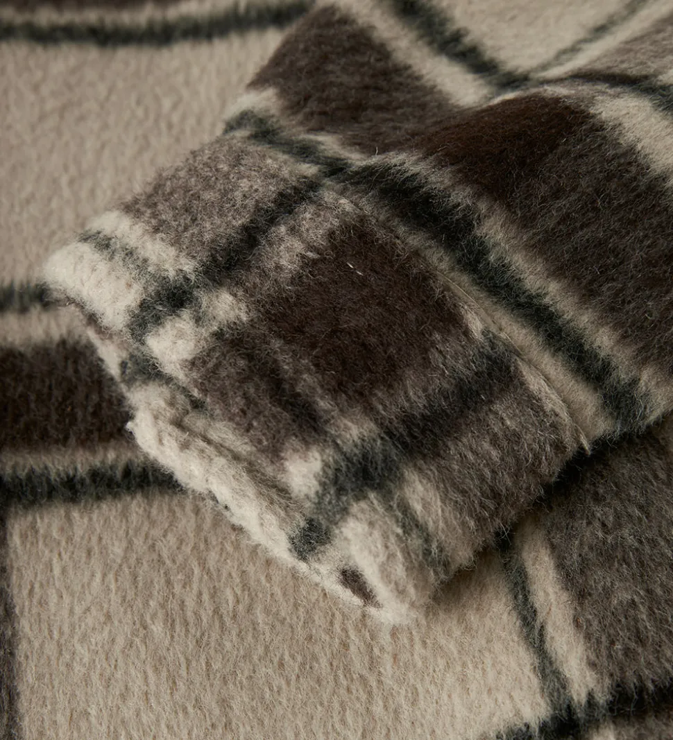 Flot Name It overshirt med lange ærmer og et stilfuldt, ternet mønster i afdæmpede beige nuancer kombineret med mørkere striber.