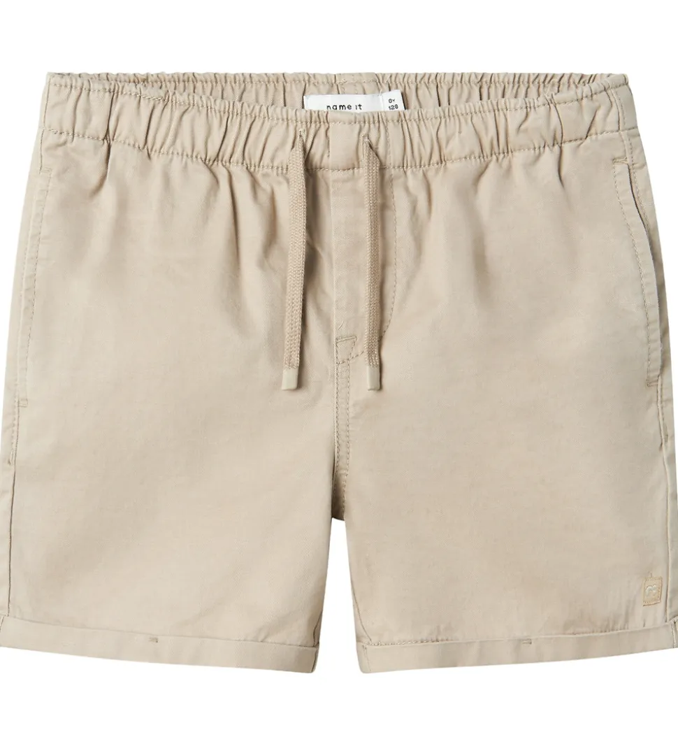 Tidløse Name It shorts i en klassisk beige farve med en enkel twill struktur. Name It har designet shortsene med en elastisk talje og dekorativ snørre, som sikrer en god pasform. De har diskrete sidelommer og en baglomme for ekstra funktionalitet.