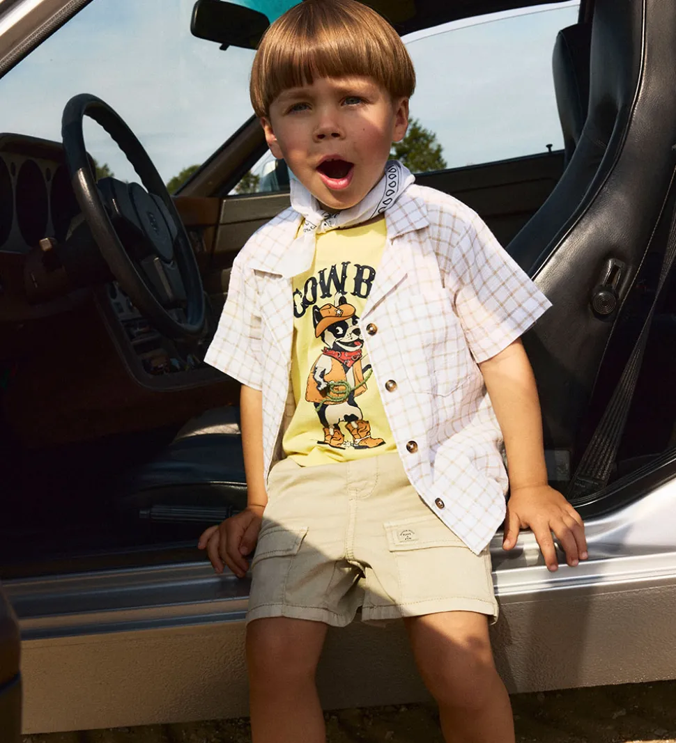 Name It skjorten har korte ærmer og i halsåbningen er der en blød krave, hvilket giver en afslappet pasform. Den åbnes fortil med gennemgående knapper, og på venstre bryst er der en åben lomme. Skjortens lækre kvalitet og enkle detaljer gør den til et alsidigt valg.