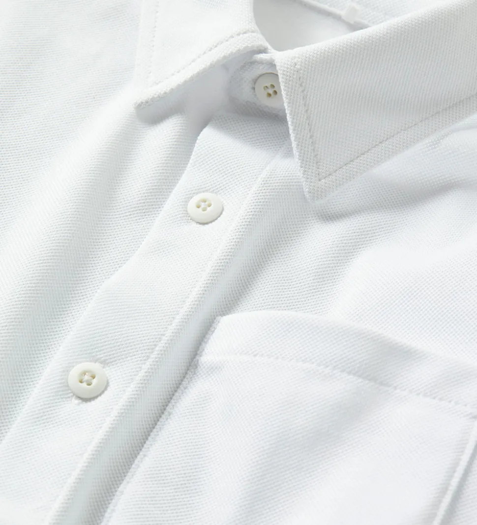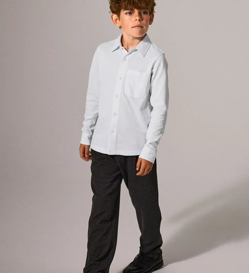 Stilren Name It skjorte i klassisk hvid med piqué-struktur. Skjorten har en enkelt brystlomme og knaplukning foran. Name It designet har lange ærmer og en traditionel krave, hvilket giver en tidløs fremtoning.