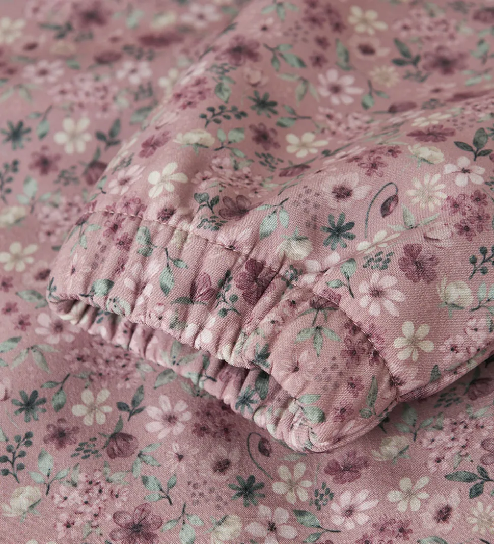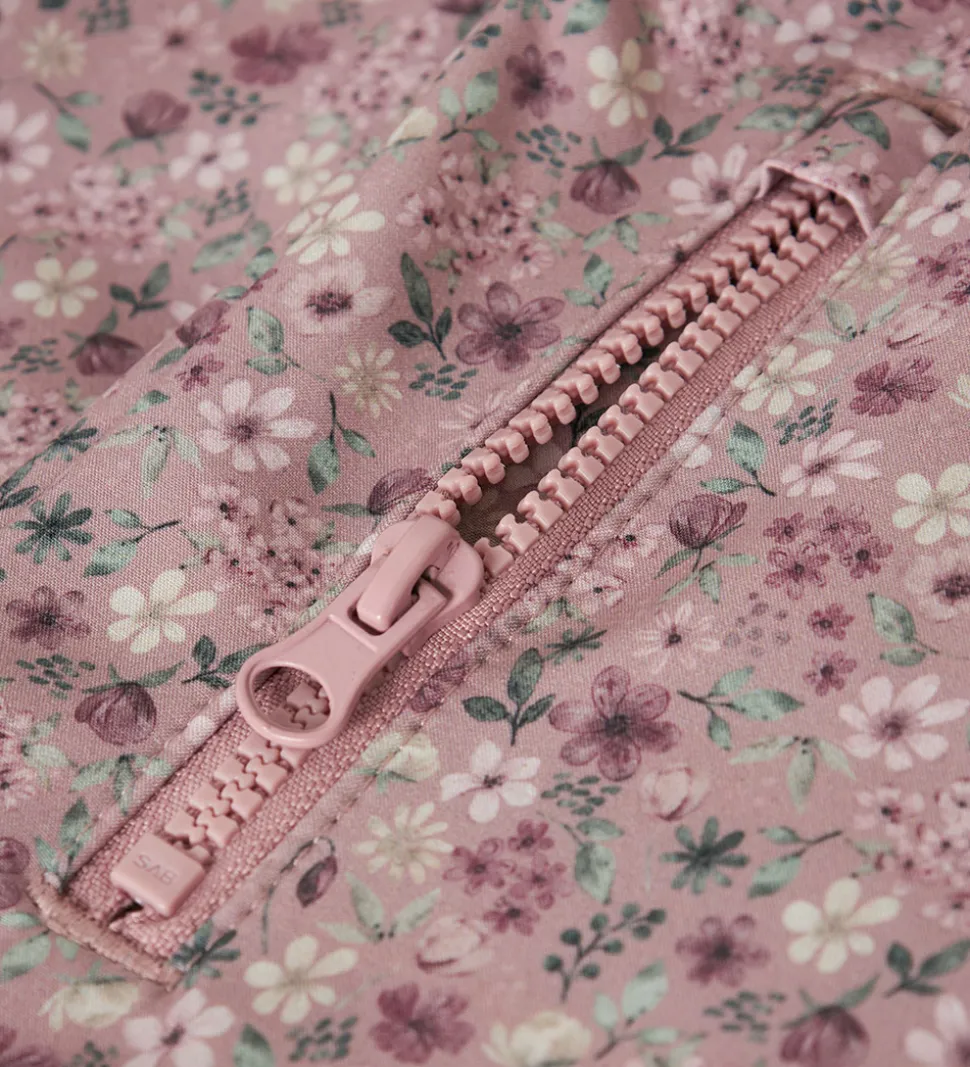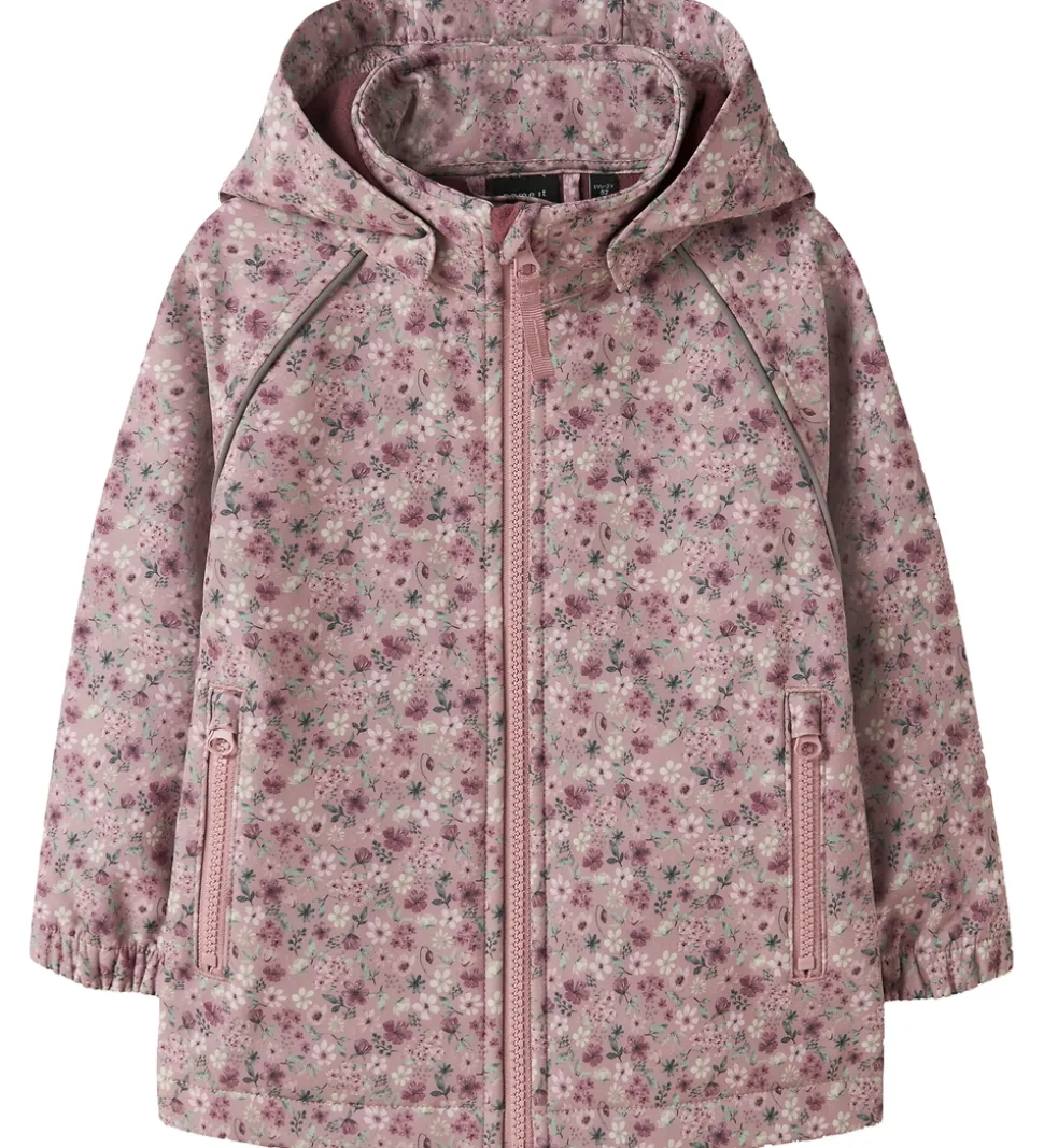 Dejlig Name It softshelljakke i en mørk, rosa nuance med et skønt småblomstret alloverprint.