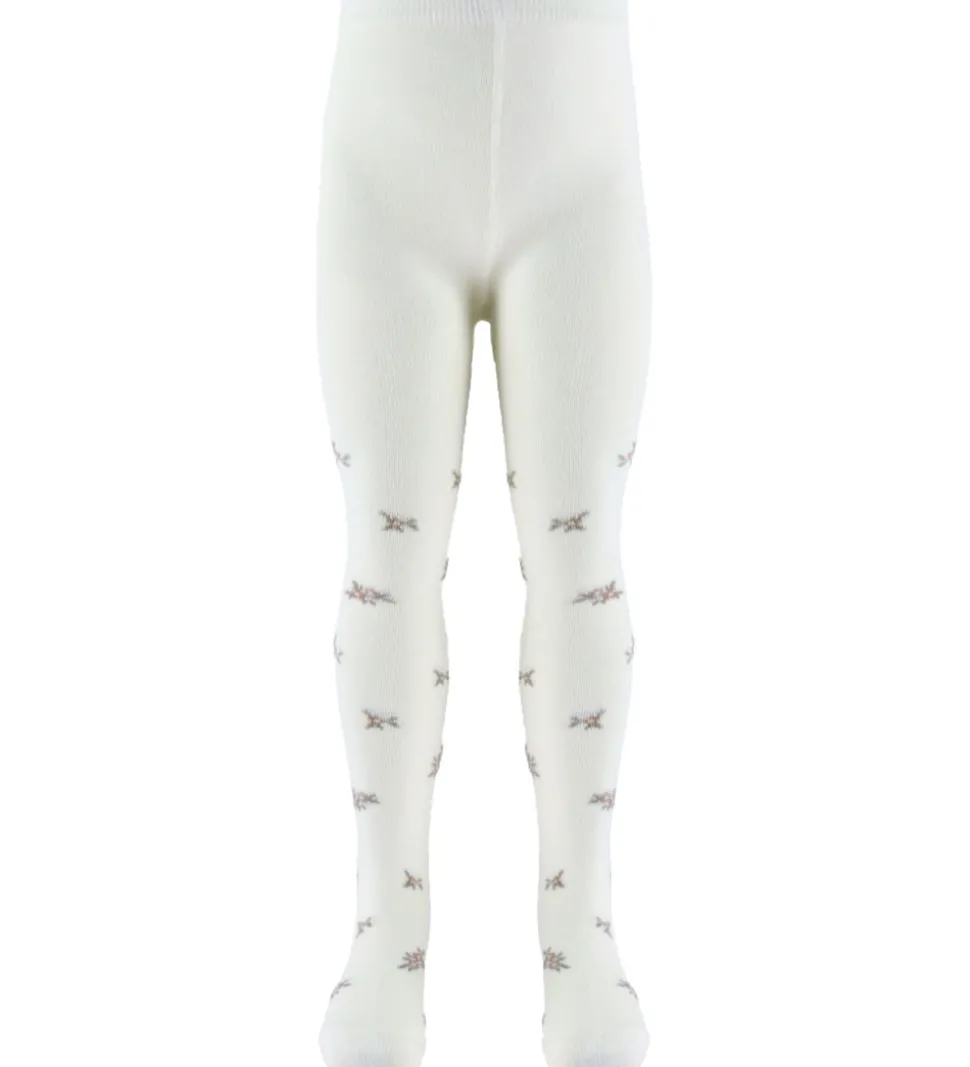 Fine Name It strømpebukser i en ensfarvet hvid med små, delikate blomster i jacaurd. Strømpebukserne har en blød og elastisk pasform i livet og hele benet, der sikrer en god pasform.