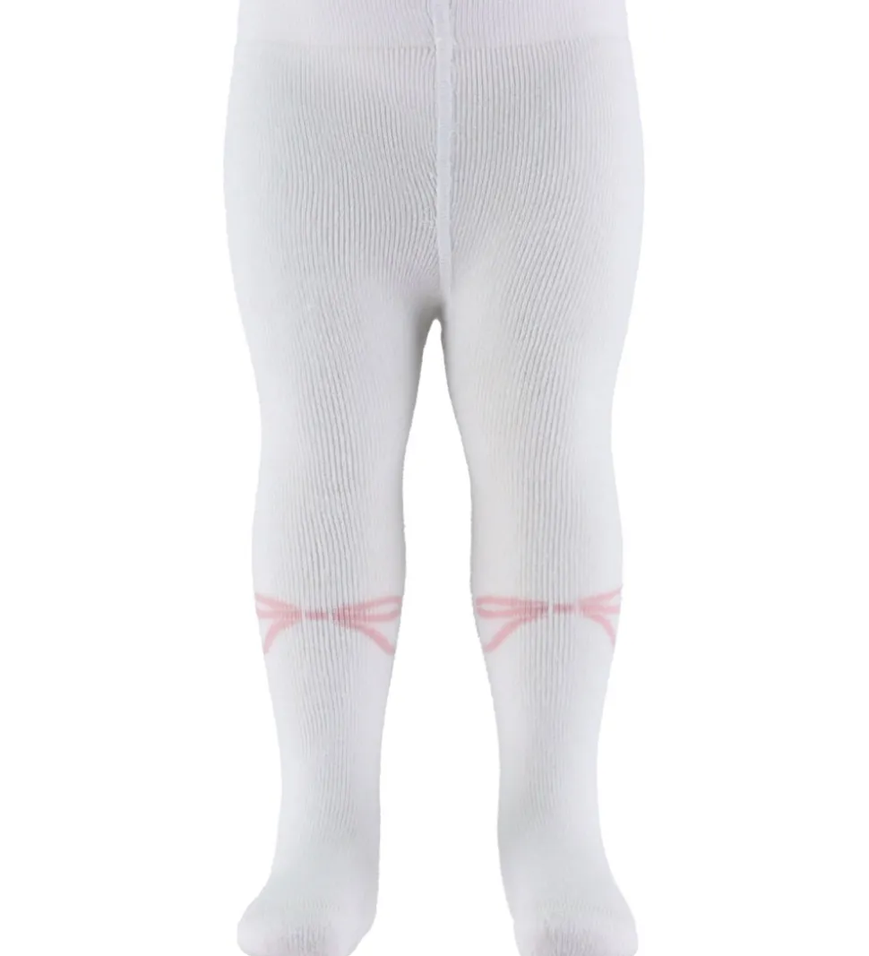 Fine Name It strømpebukser i en enkel, hvid farve med et diskret, lyserødt sløjfemønster. Strømpebukserne har en diskret ribstruktur, der giver et subtilt udtryk. De er udstyret med en elastisk talje, hvilket sikrer en god pasform.