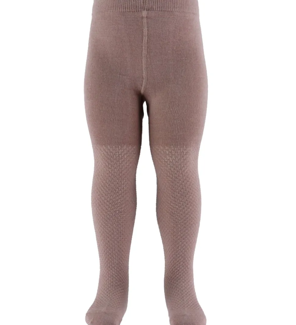 Behagelige Name It strømpebukser i støvet rosa med fin struktur. I taljen er der en god elastik, som sikrer en god pasform. Strømpebukserne er fremstillet med 50% merinould.