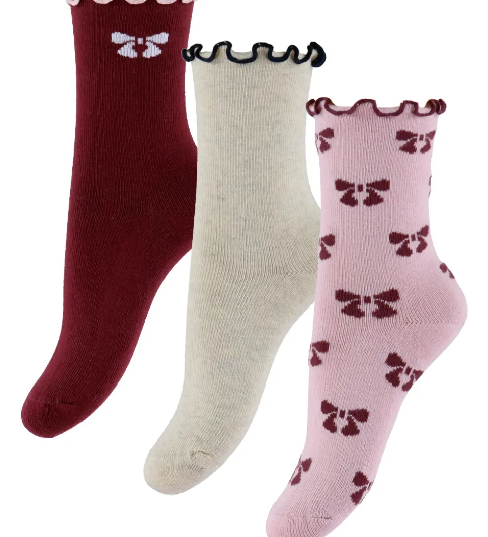 Fine Name It strømper solgt i en 3-pak med farverne bordeauxrød, rosa og meleret beige.