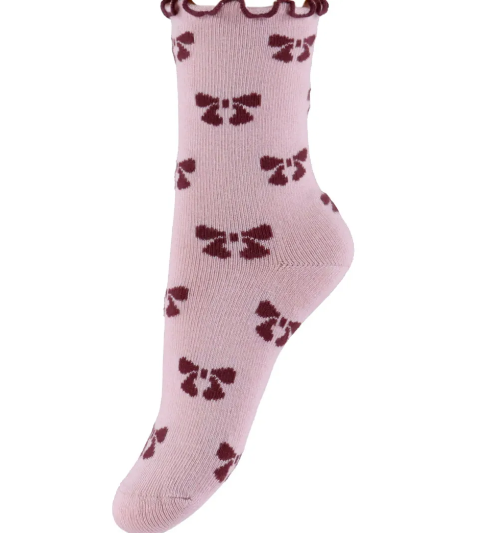 Strømperne har fine sløjfeprint, og de er designet med en bølget kant øverst, der tilføjer et elegant touch. Name It strømperne er lavet med en blød struktur og har en behagelig elastik i toppen for en god pasform.