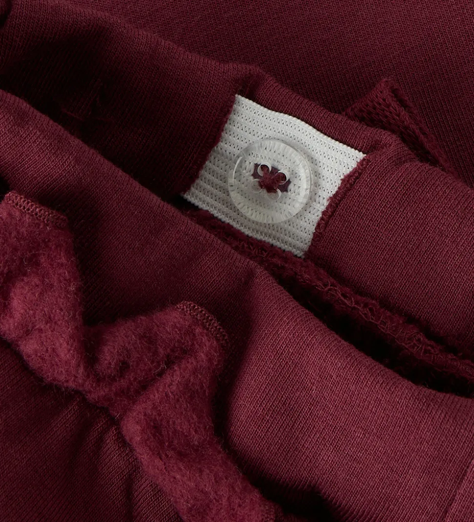 Attraktive sweatpants fra Name It i en flot bordeaux farve. Designet har et sødt flæsedetalje i livet og en dekorativ sløjfe. Sweatpantsene er udstyret med indvendigt justerbar eleastikkant i livet og ved anklerne, hvilket giver en behagelig pasform. Name It har her skabt en klassisk model, der er både praktisk og tidløs i designet.