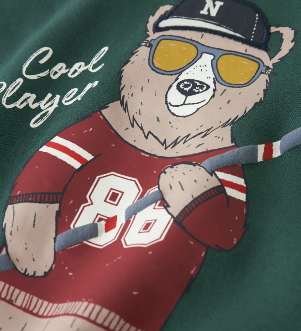 Charmerende Name It sweatshirt i mørkegrøn med et print på fronten af en bjørn med ishockey tøj og stav. Printet inkluderer smarte applikationer og teksten “Cool Player”. Name It sweatshirt har en rund halsudskæring og lange ærmer med ribkanter. Indvendigt er der blødt, børstet bomuld.