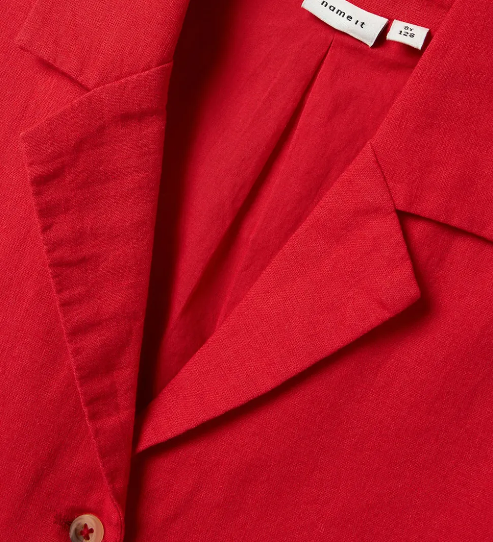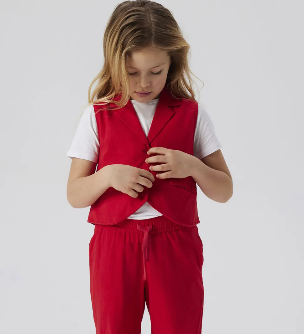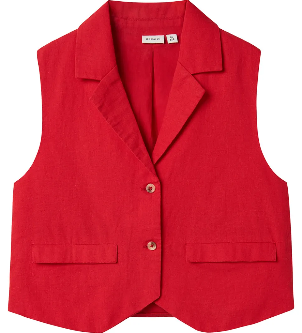 Lækker Name It vest i en klar rød farve med en klassisk krave og to forlommer. Det enkle design gør den alsidig, mens Name It sikrer en god pasform til børn.