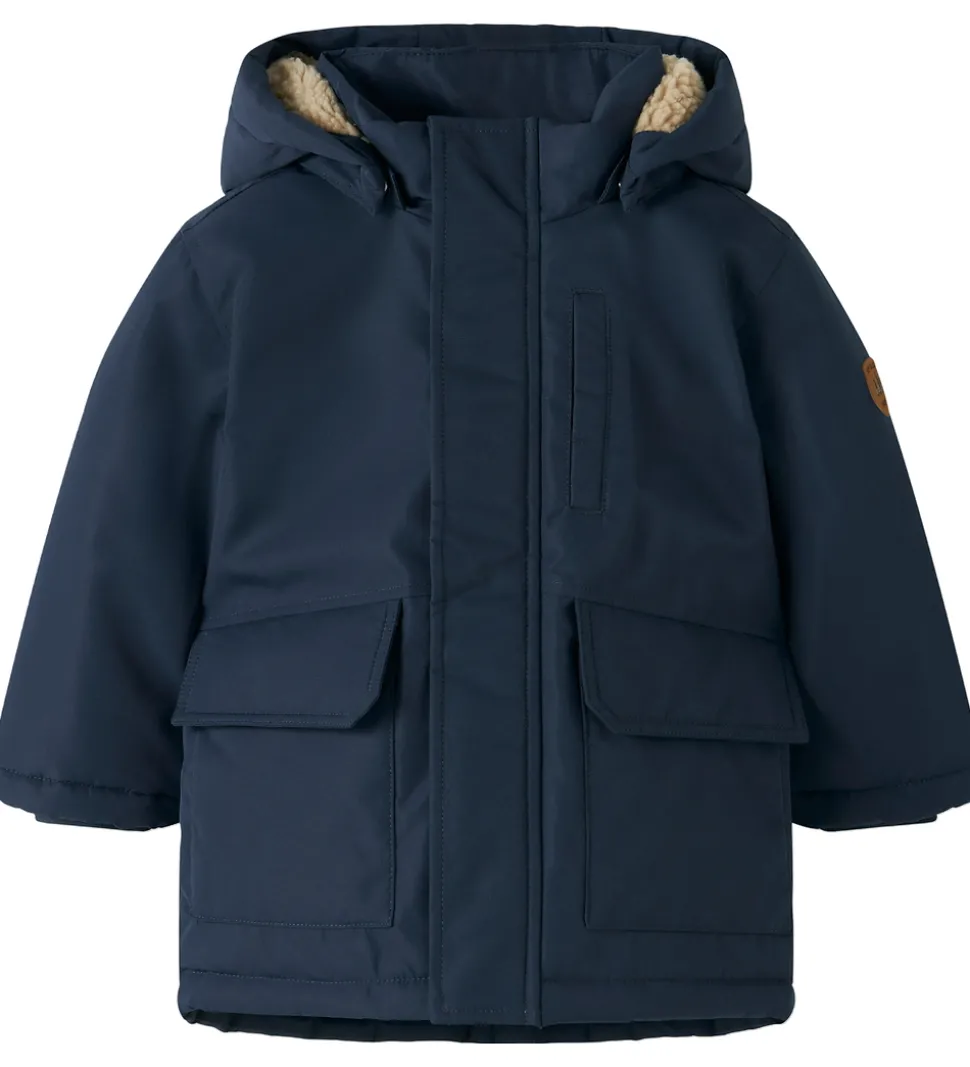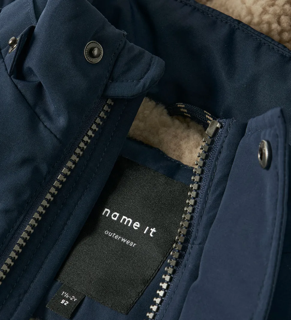 Flot Name It vinterjakke i ensfarvet mørkeblå.