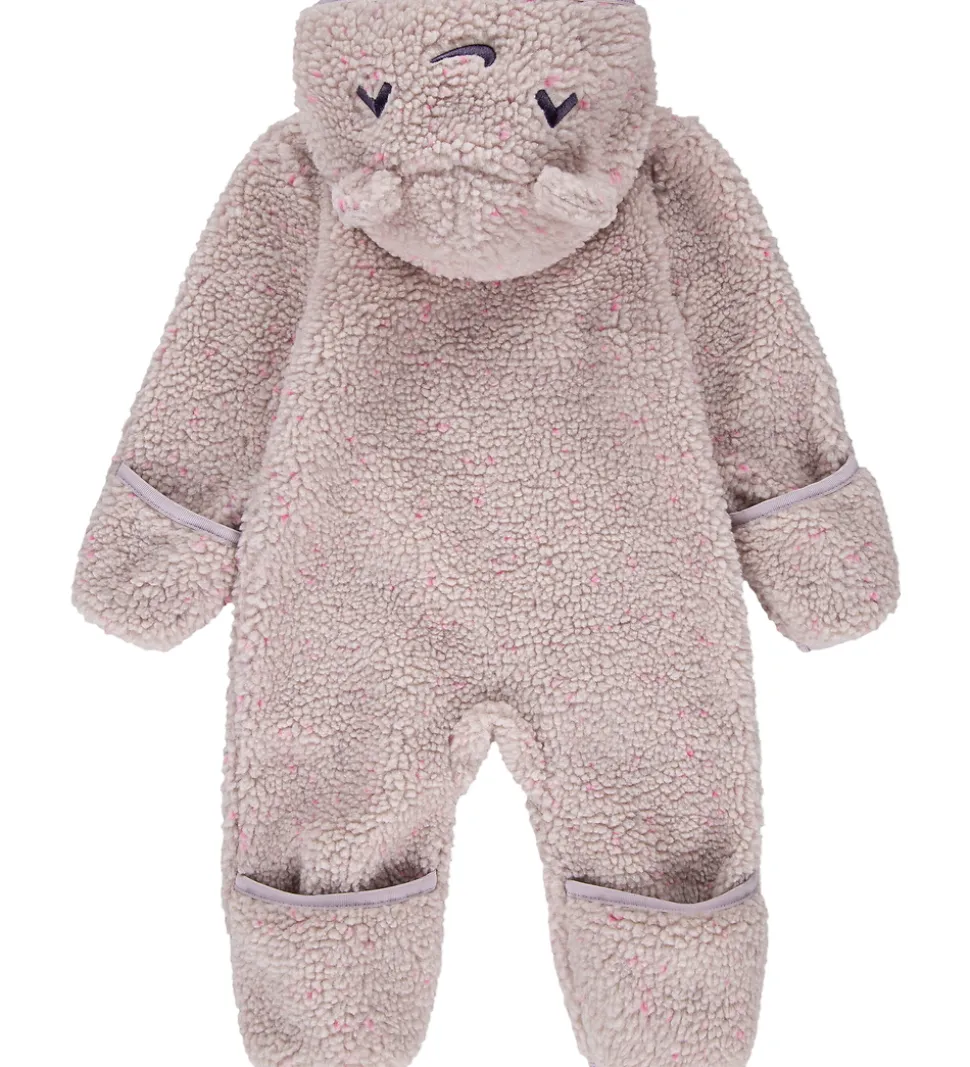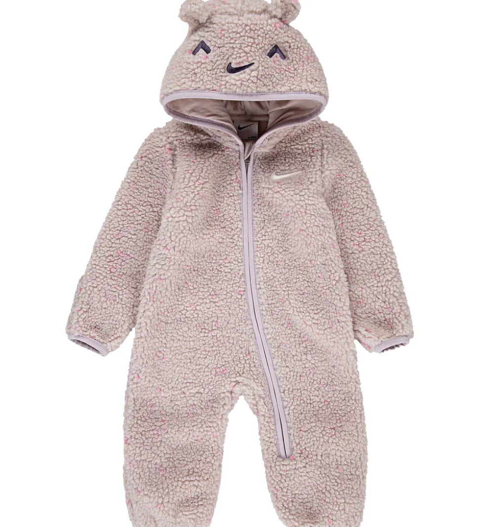 Charmerende fleecedragt fra Nike i en blød rosa nuance med bittesmå lyserøde nister, der tilføjer et delikat touch. Nike fleecedragten har en hætte udsmykket med søde øre-detaljer og påsyede grafikker. Den er designet med lange ærmer og ben. Fleecedragten har en praktisk lynlås med hagebeskytter foran, hvilket gør det nemt at få den af og på. På ærmer og ben har dragten ombuk, som holder hænder og fødder varme.