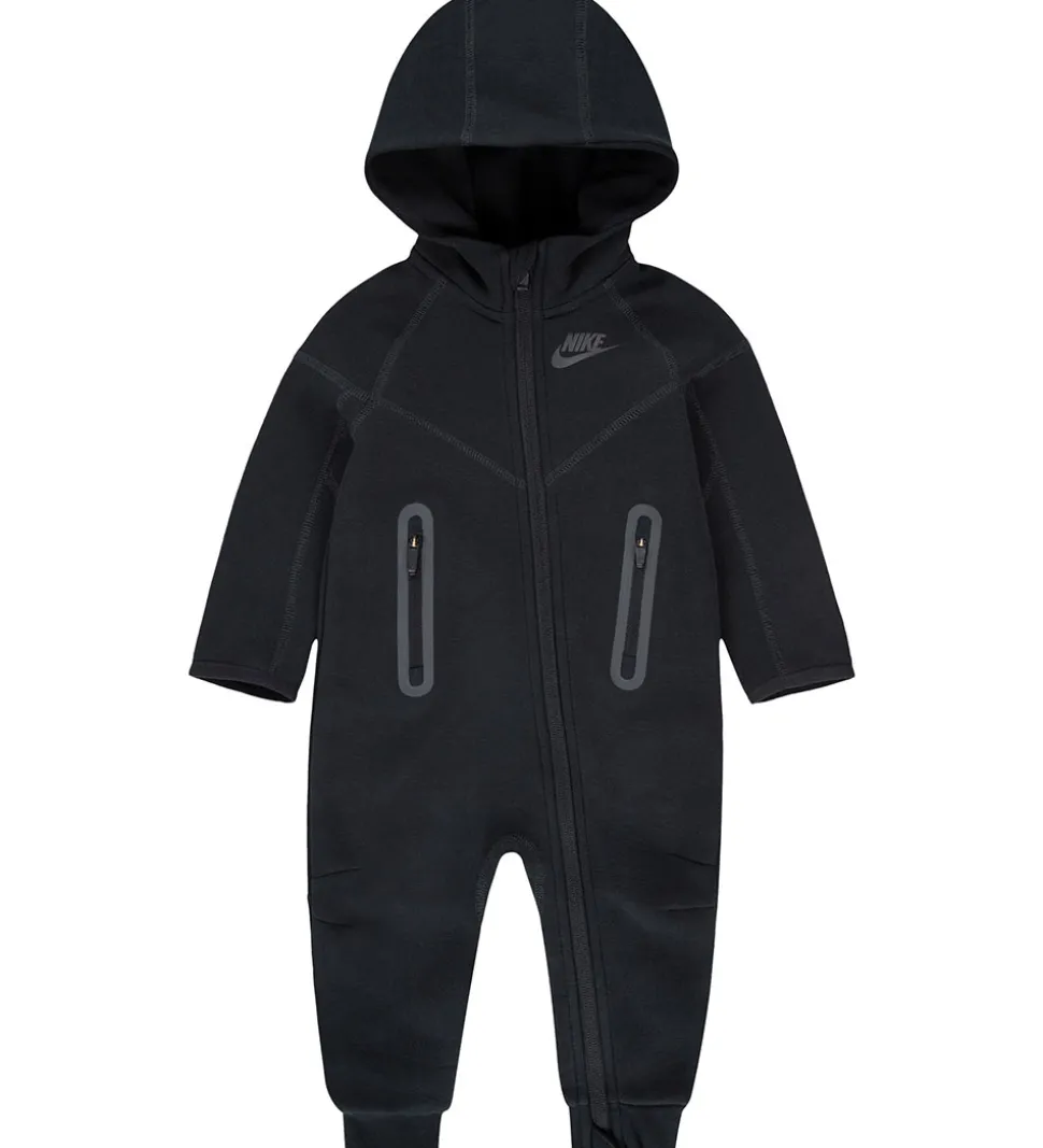 Lækker Nike heldragt i ensfarvet sort, og fortil i venstre side står der “Nike” trykt i sort.