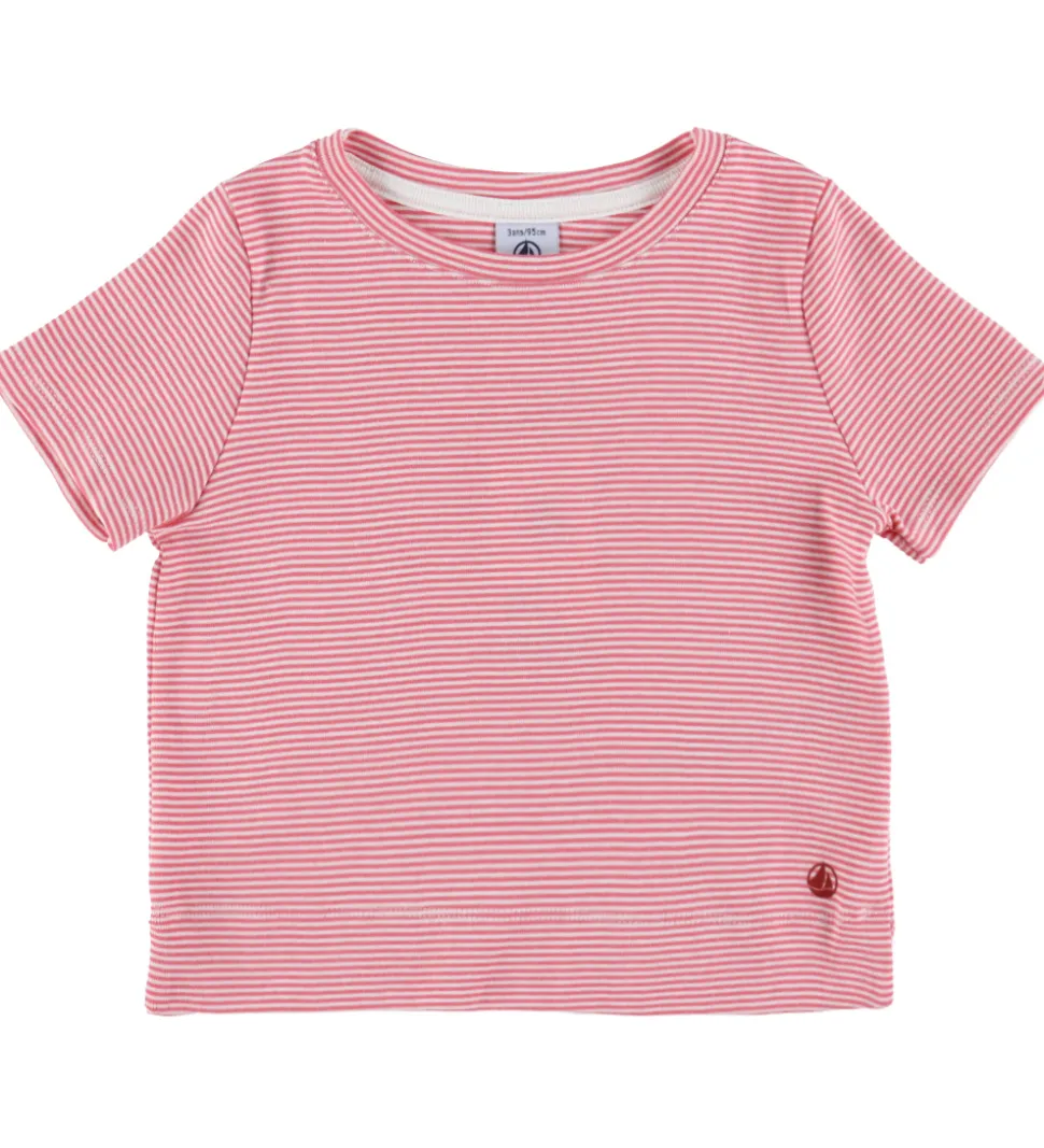 Behageligt Petit Bateau nattøj 2-delt sæt bestående af en stribet t-shirt med korte ærmer i pink og hvid. Matchende bukser med elastisk talje og dekorativt bindebånd fuldender det stilfulde look.