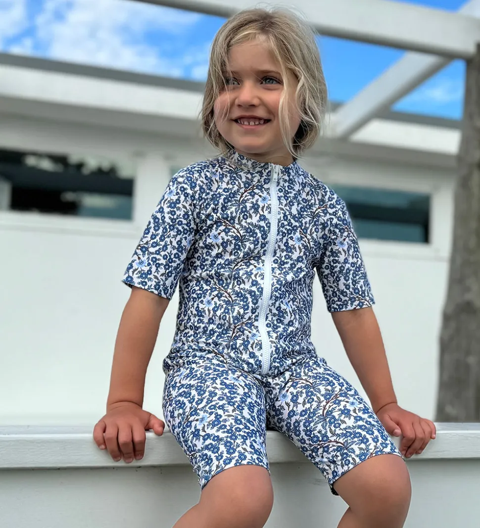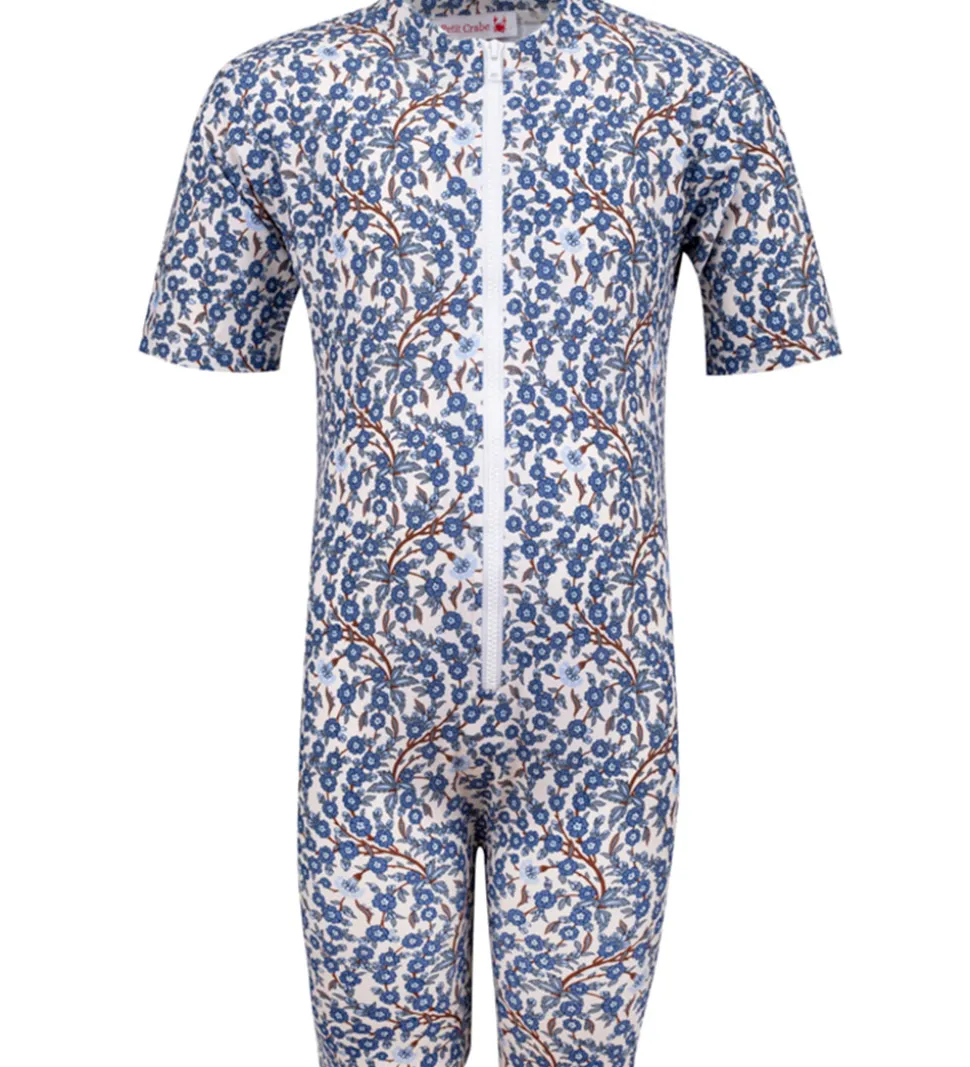 Smart Petit Crabe badeheldragt i hvid med et allover blomsterprint i blå nuancer.