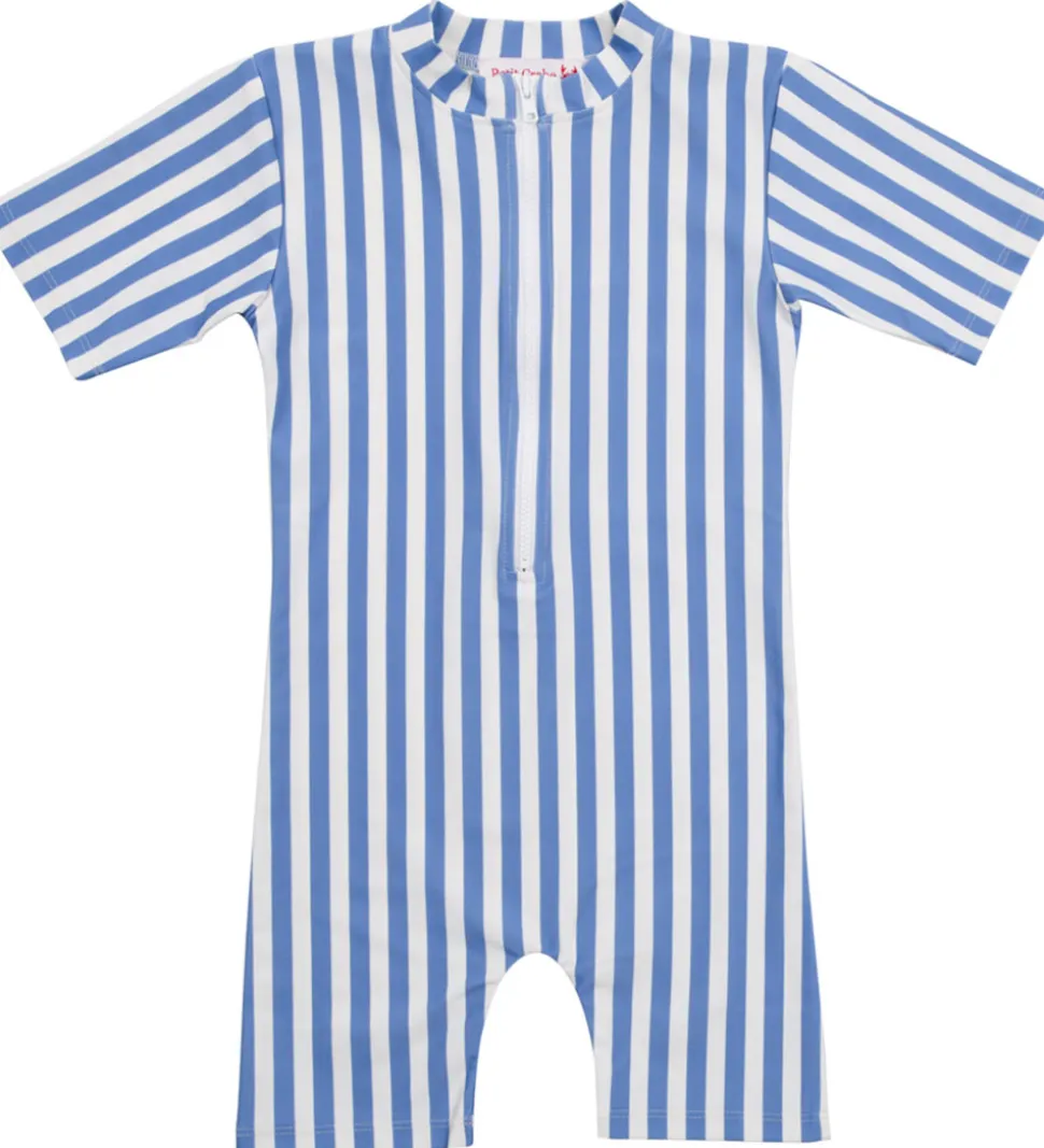 Smart Petit Crabe badeheldragt med lodrette striber i hvid og lyseblå.