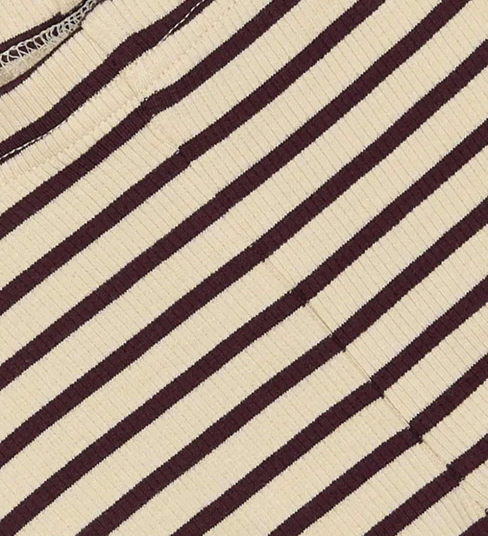 Stilfulde Petit Piao leggings i beige med et bordeaurøde striber og med en flot ribstruktur. Petit Piao leggingsene har en elastisk talje, som sikrer en god pasform.