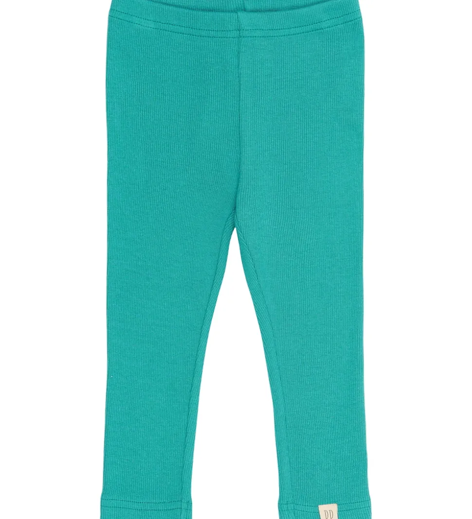 Smukke Petit Piao leggings i en klar, turkisblå nuance med en let ribstruktur. Petit Piao leggingsene har en elastisk talje, der sikrer en god pasform.