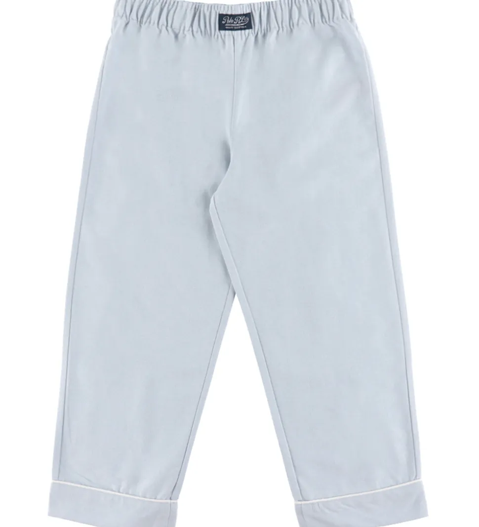 Flot Polo Ralph Lauren nattøj, der består af et par natbukser og en natbluse i lyseblå med fine, hvide pipings. Nattøjet er lavet i en fastvævet kvalitet.