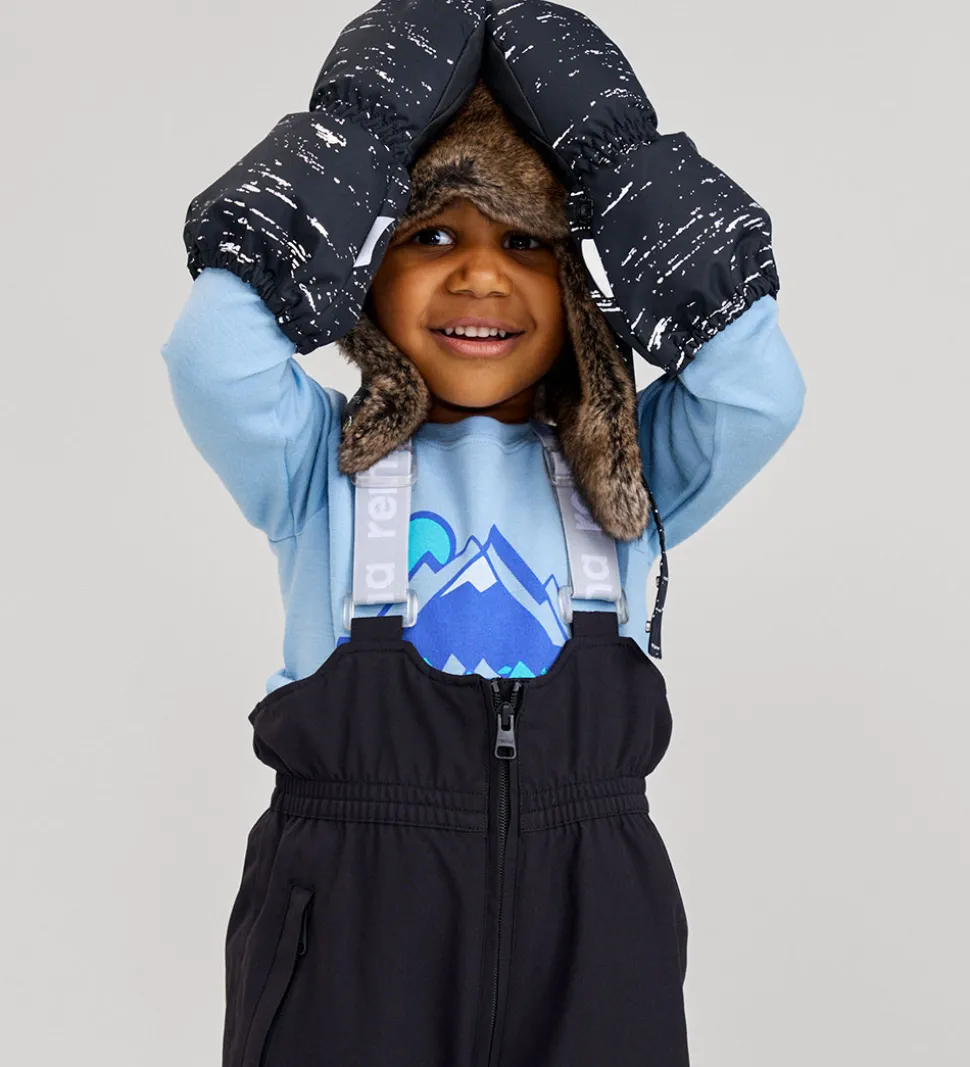 Praktiske Reima luffer i sort med et fint alloverrefleksmønster.