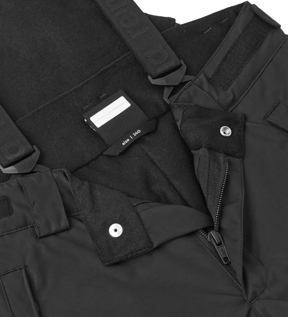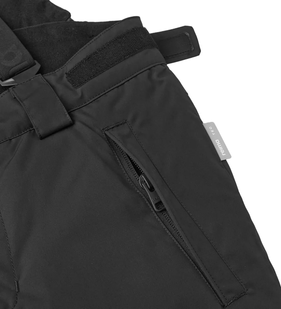 Reima skibukserne har justerbare seler, som lukkes med klikspænder fortil, og er aftagelige med en lynlås i ryggen. I livet er der velcrojusteringer og bæltestropper, og skibukserne åbnes fortil med en tryknap og en lynlås. I siderne er der praktiske lommer, som lukkes med en skjult lynlås, og der er også en ekstra lynlåslomme på højre lår.