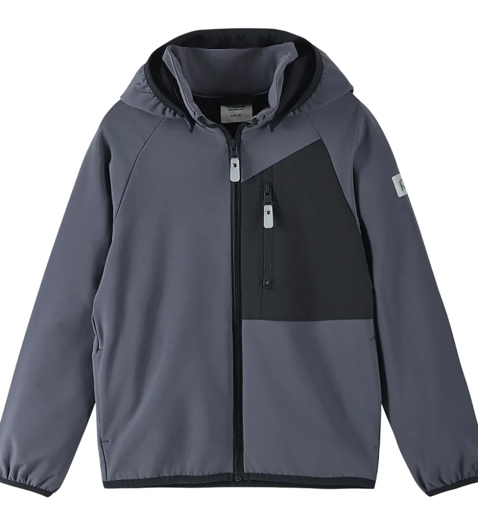 Smart Reima softshelljakke i grå med sorte detaljer.