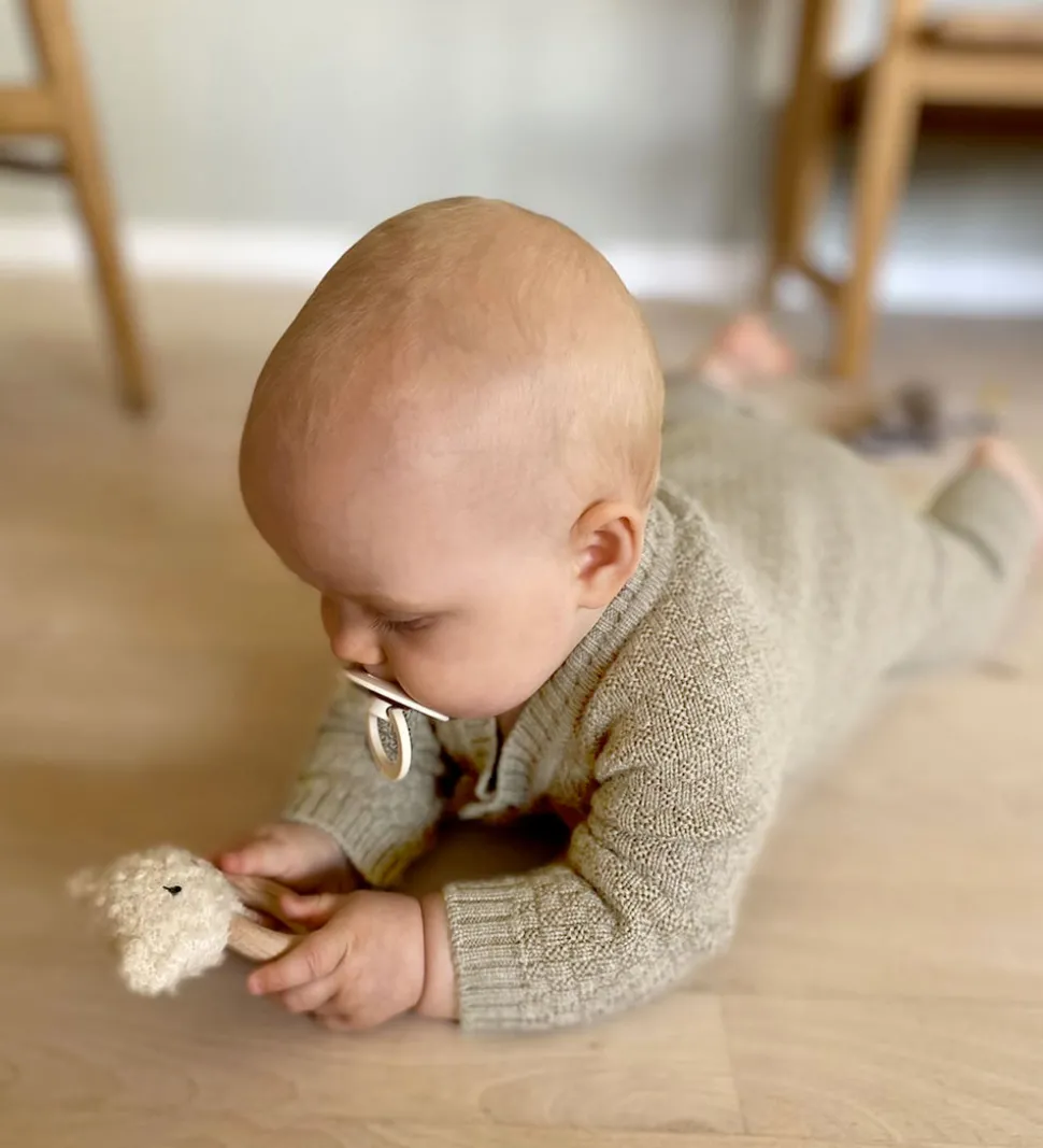 Praktisk Smallstuff heldragt i ensfarvet beige med en flot strikstruktur.