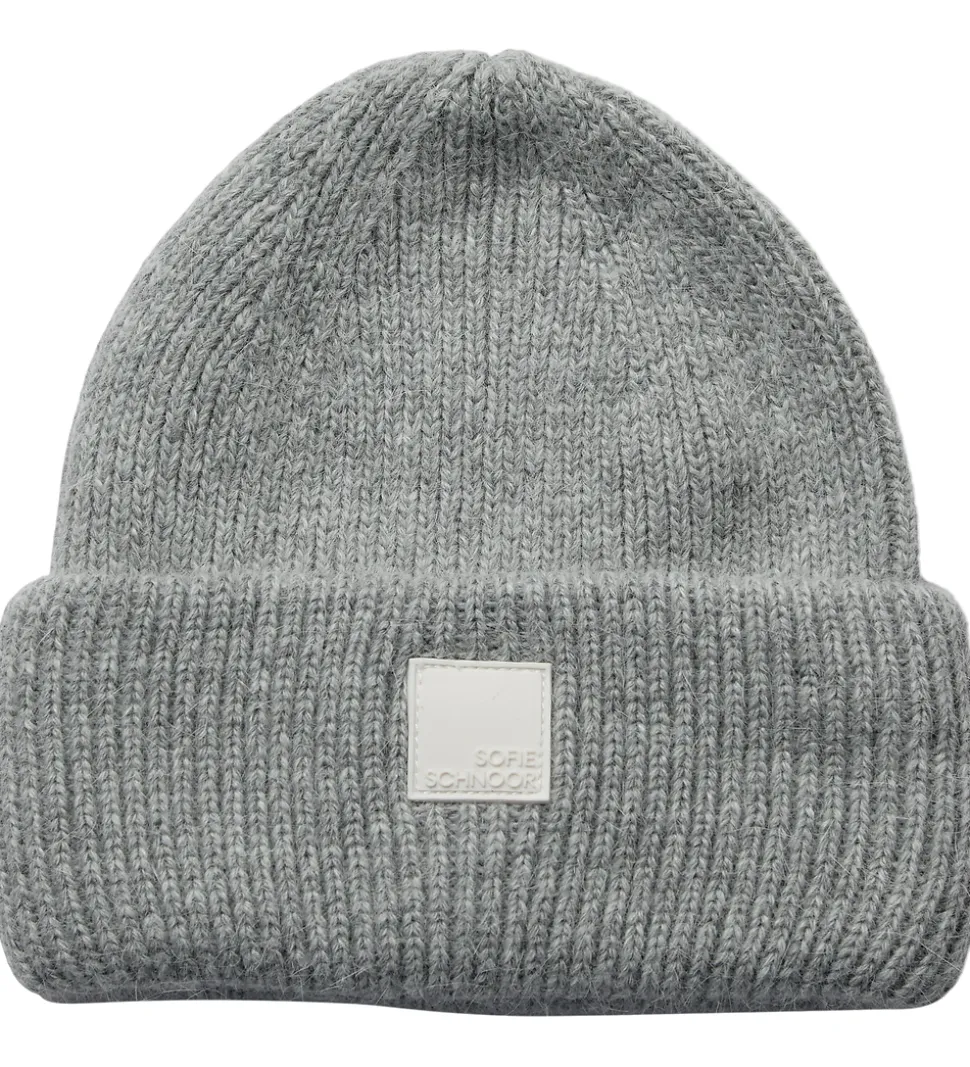 Elegant Sofie Schnoor hue i en klassisk, gråmeleret nuance. Huen har en ribbet strikstruktur, der giver et enkelt udtryk. Fronten prydes af et diskret Sofie Schnoor logomærke, der fremhæver brandets stil.
