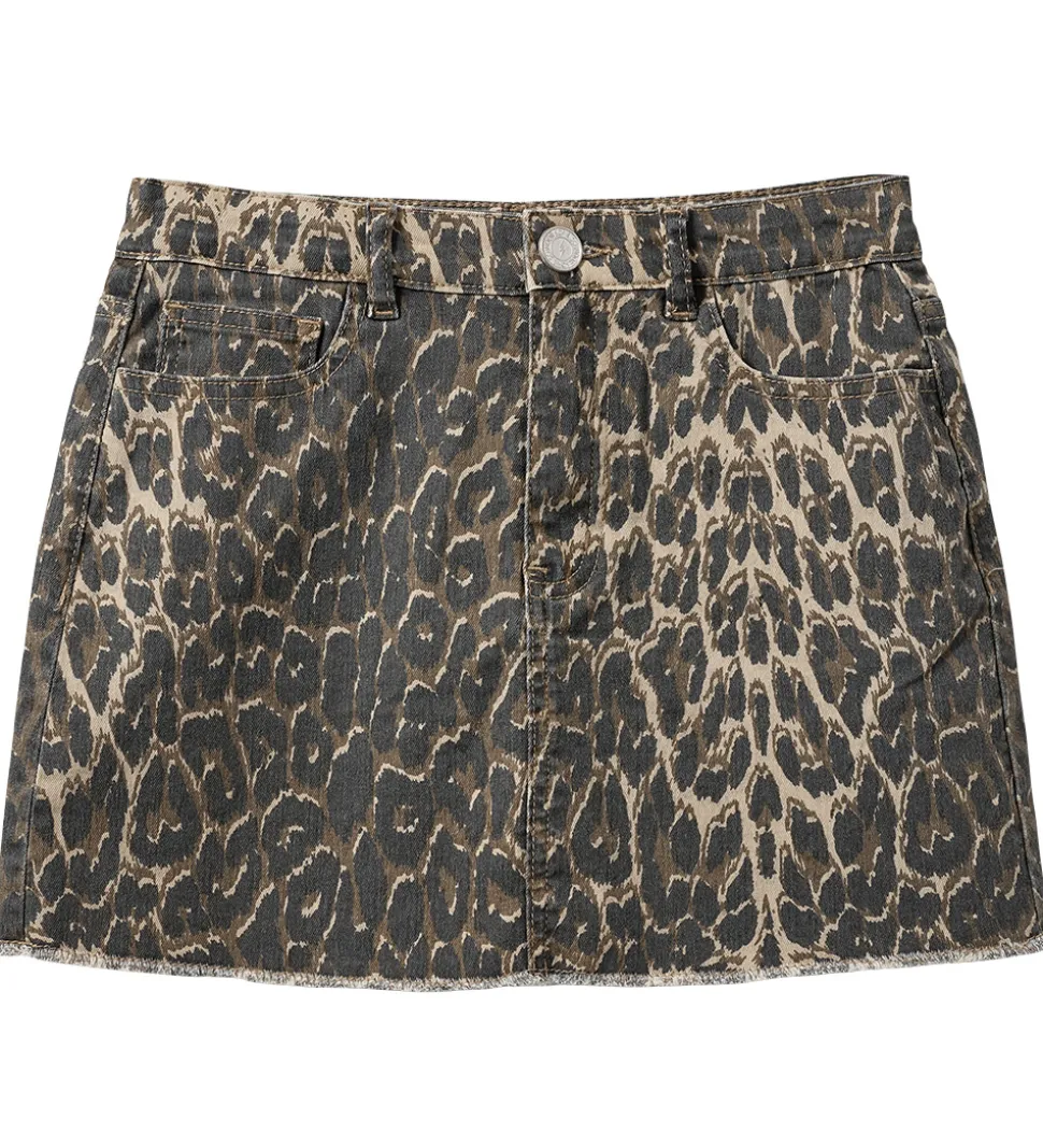Lækker Sofie Schnoor nederdel med et flot leopardprint i nuancer af brun, sort og beige. Nederdelen har klassisk design med en rå kant forneden, som giver et stilrent look til garderoben.