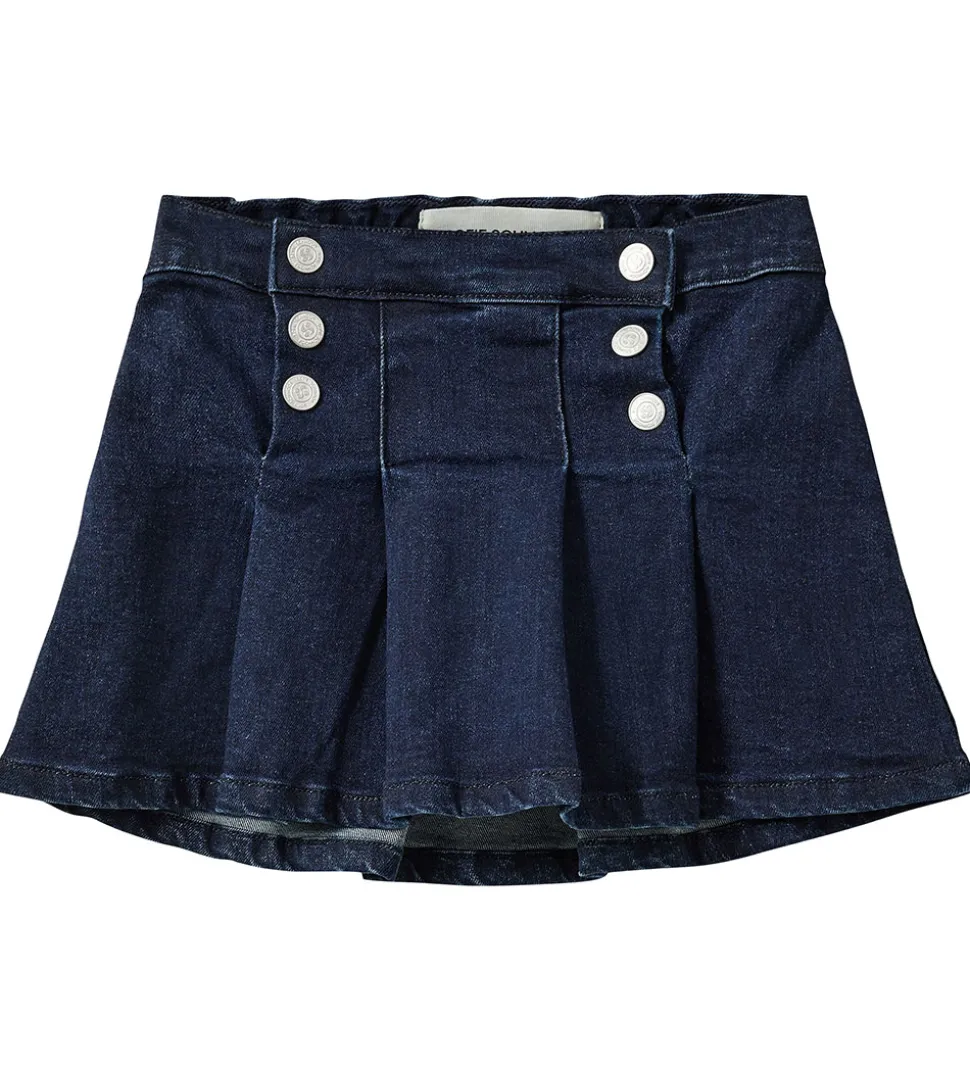 Lækker Sofie Schnoor nederdel i en klassisk mørk denim med dekorative knapdetaljer. Nederdelen har et enkelt design, der gør den let at style til forskellige anledninger.