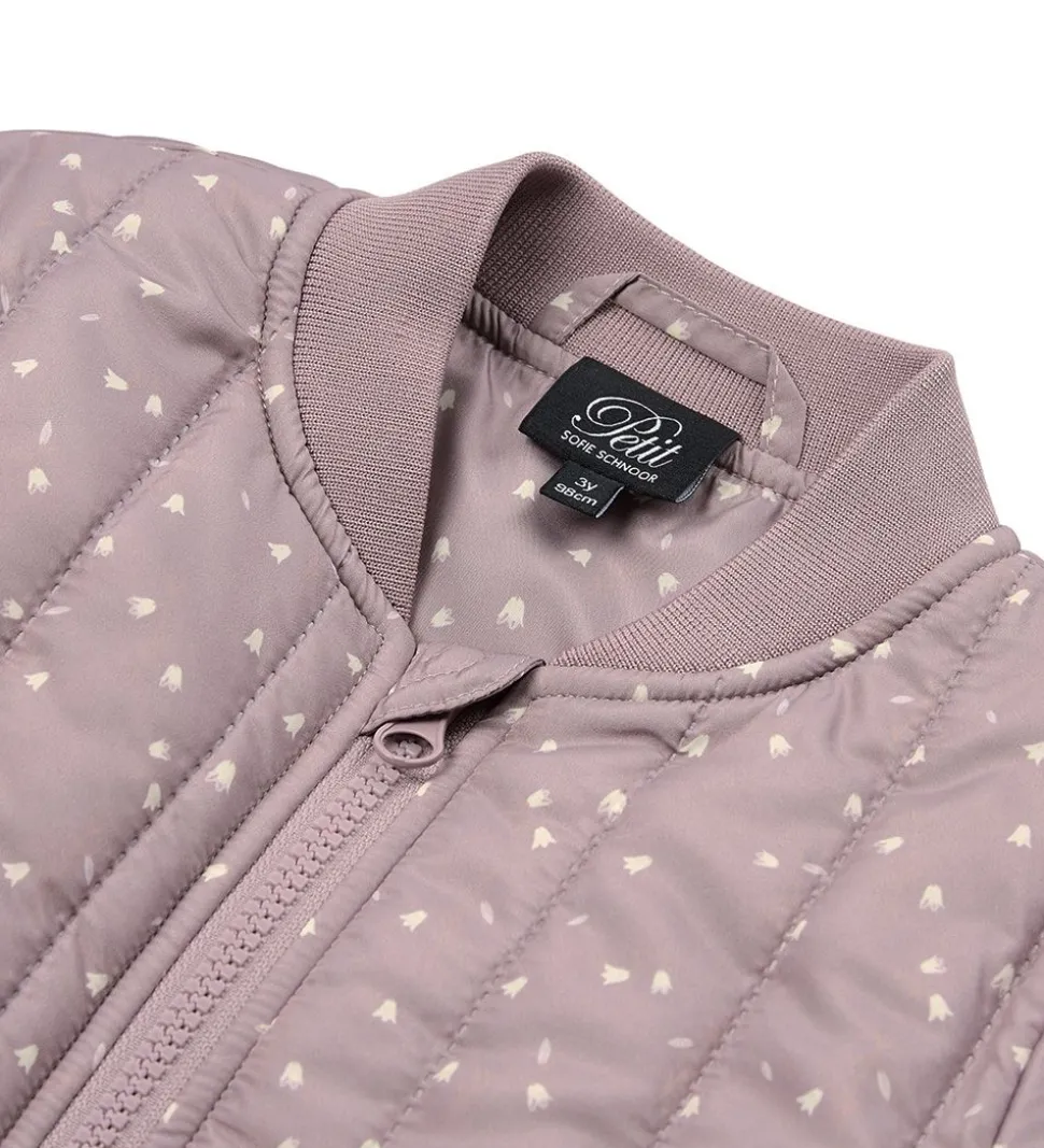 Fine Petit by Sofie Schnoor termojakke i lys lilla med et alloverblomsterprint i lyse toner. Termojakken er med en quiltet struktur.