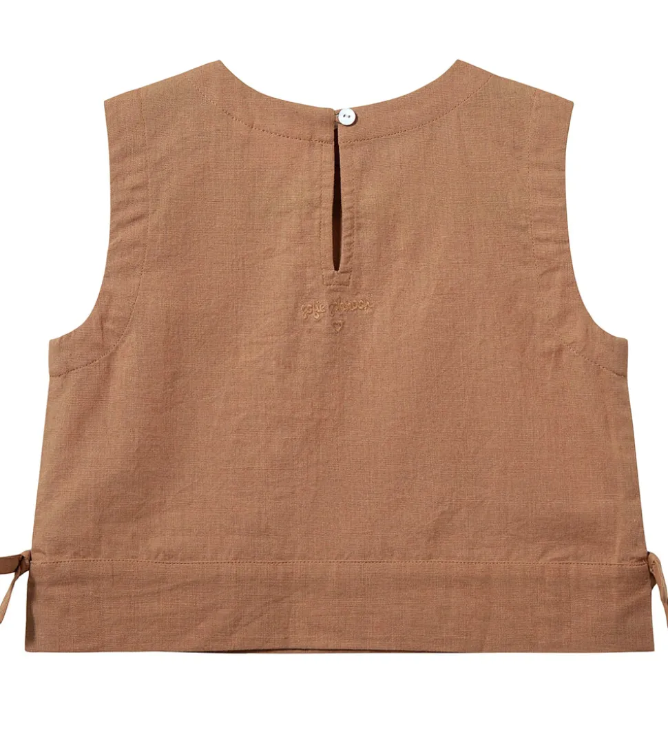 Smuk Sofie Schnoor top i en skøn rødbrun nuance og med dekorative fastsyede sløjfer i siden.