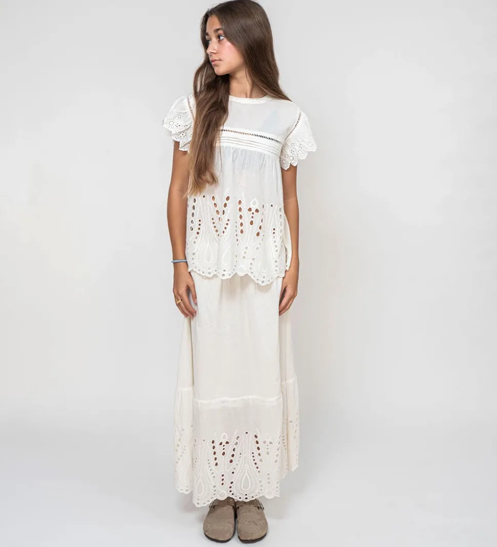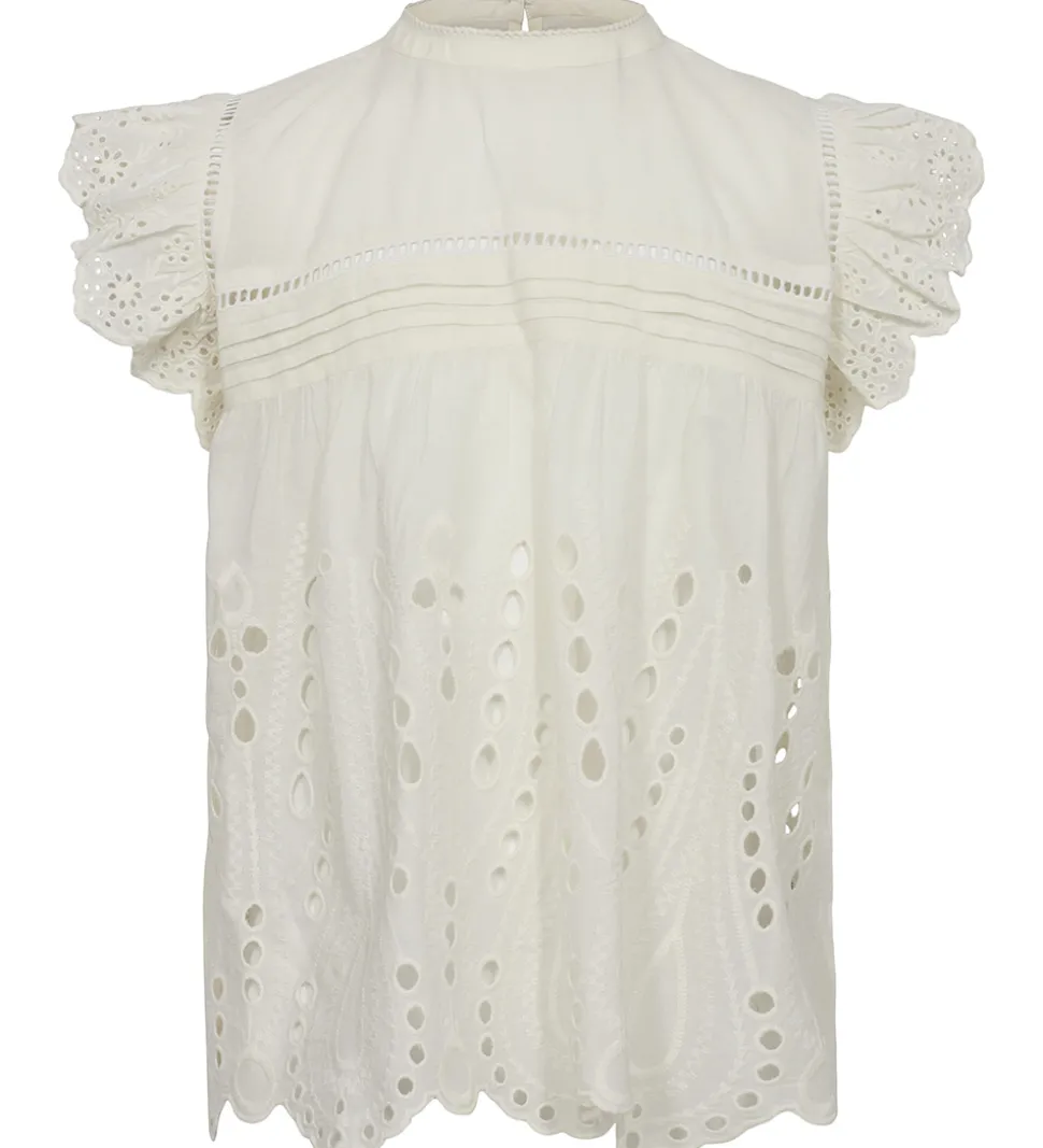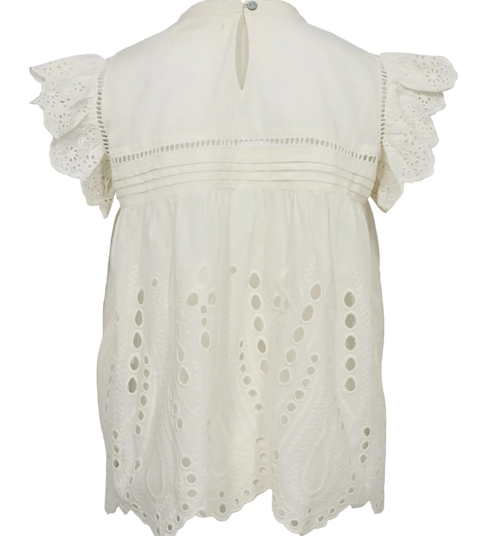 Sød Sofie Schnoor top i ensfarvet hvid, med flotte blonder på ærmerne samt nederest.