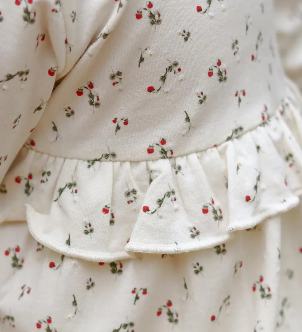 Flot That’s Mine tunika i beige, med print af grønne buske med røde bær over det hele.