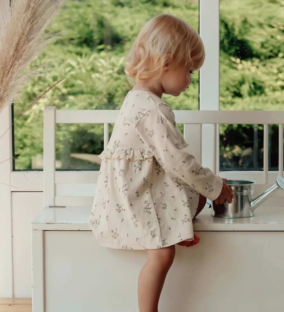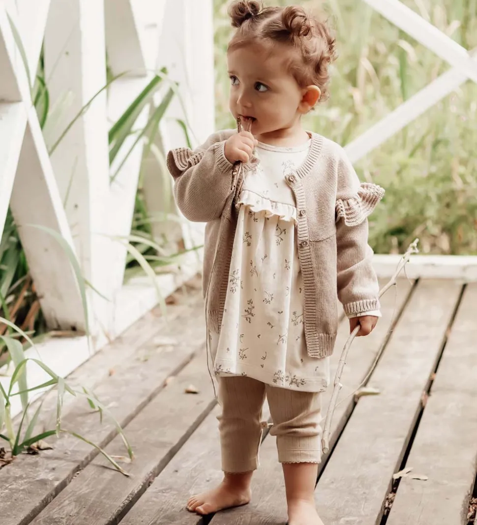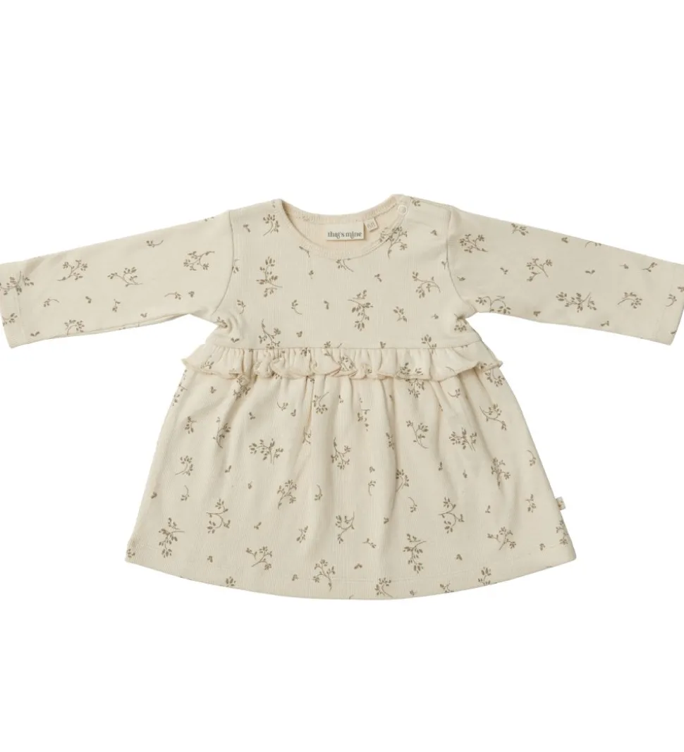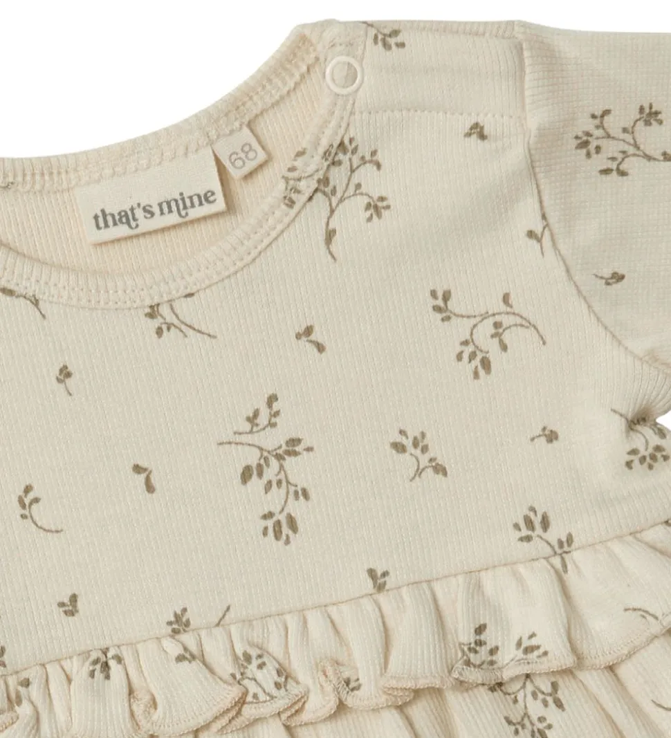 Sød That’s Mine tunika i beige rib med et alloverprint af blade i en grøn nuance.