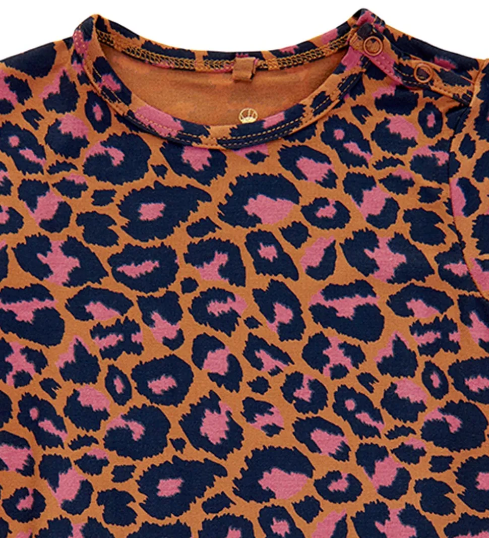 Sød The New Siblings sommerdragt i brun med allover leopardprint i rosa og sort.