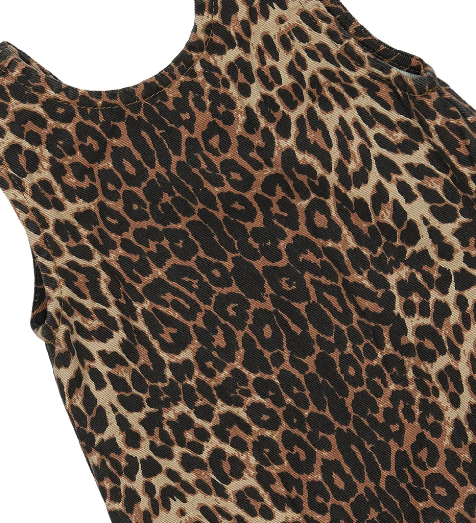 Smart spencer fra The New Siblings i twilldenim og med et allover leopardmønster i varme nuancer. The New Siblings spenceren har en behagelig og let pasform. Den er uden ærmer og med en feminin flæsekant nederst. Spenceren har en dyb. buet udskæring bagpå, som giver et fint touch, og gør det nemmere at få kjolen af og på.