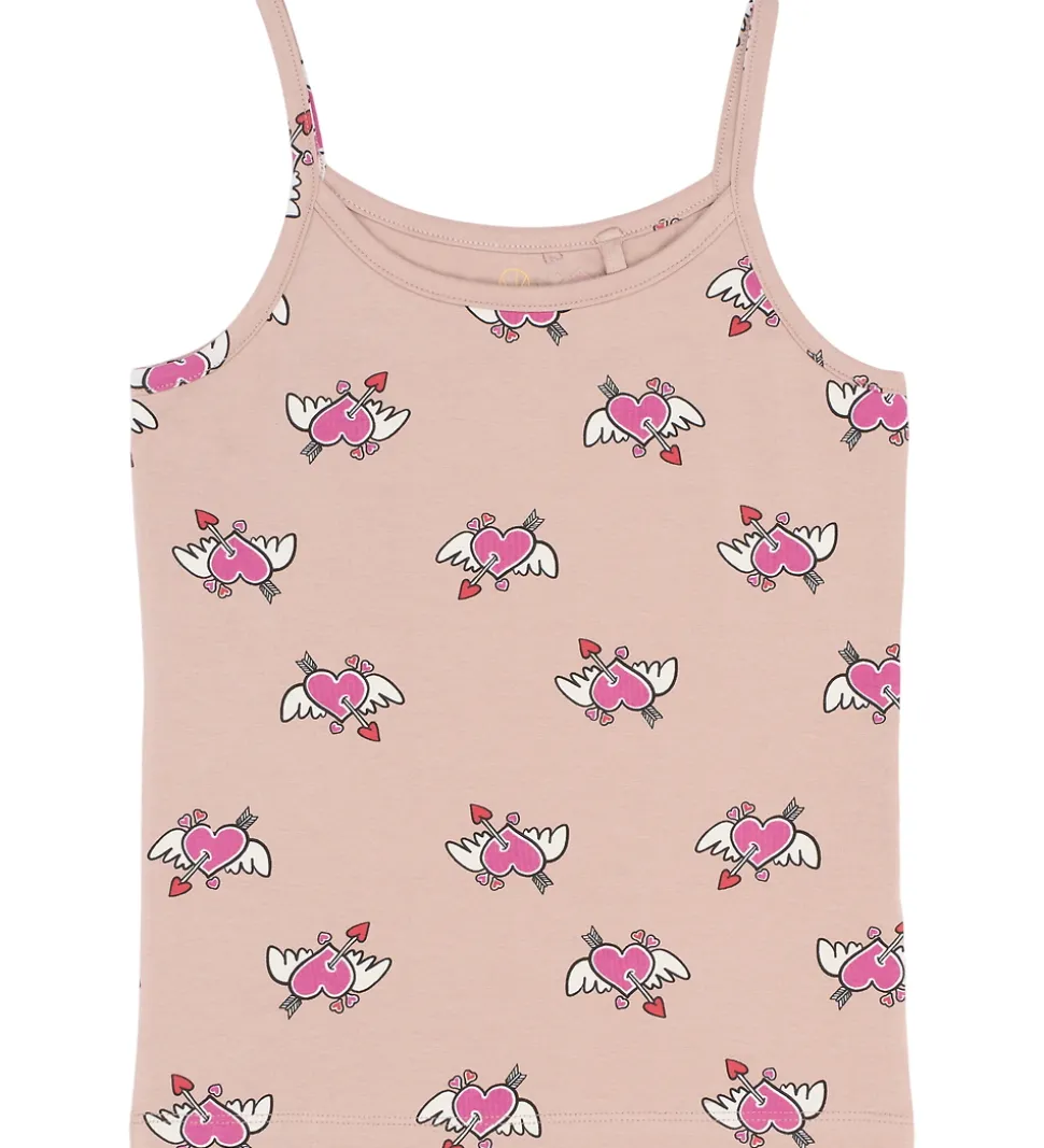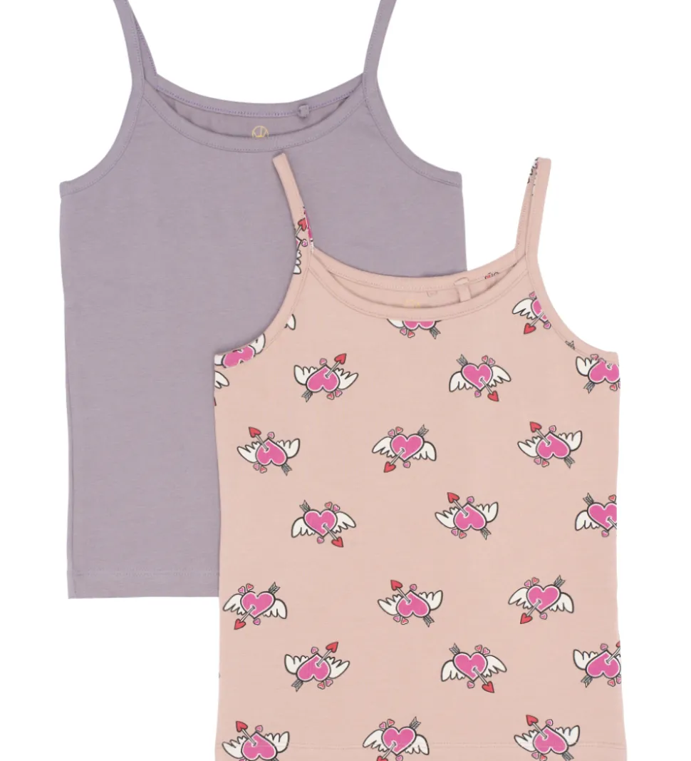 Charmerende toppe fra The New solgt i en 2-pak, en i ensfarvet, støvet lilla og en i støvet rosa med print af lyserøde hjerter med vinger og pile, der tilføjer et sjovt twist til garderoben. Perfekt til enhver lejlighed.
