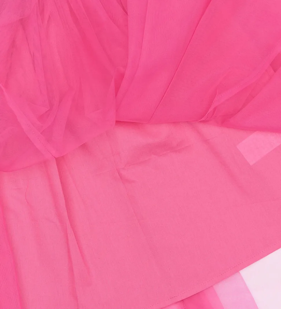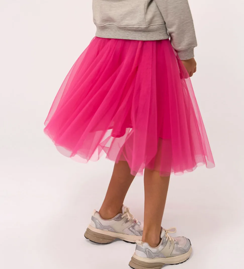 Stilfuld The New tylnederdel i en iøjnefaldende pink farve. The New nederdelen består af to lag, et glatvævet underskørt i bomuld og et ydre lag i let og luftig tyl, der skaber et flot fald. Den elastiske talje sikrer en god pasform og kan justeres indvendigt med knapper.