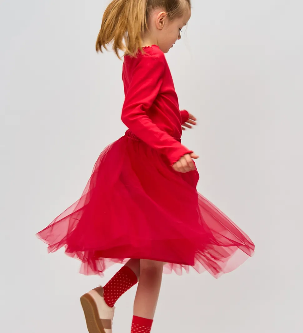 Elegant The New tylnederdel i en intens, rød farve. The New tylnederdelen har et flot lagdelt design med en justerbar, elastisk talje, der sikrer en god pasform.