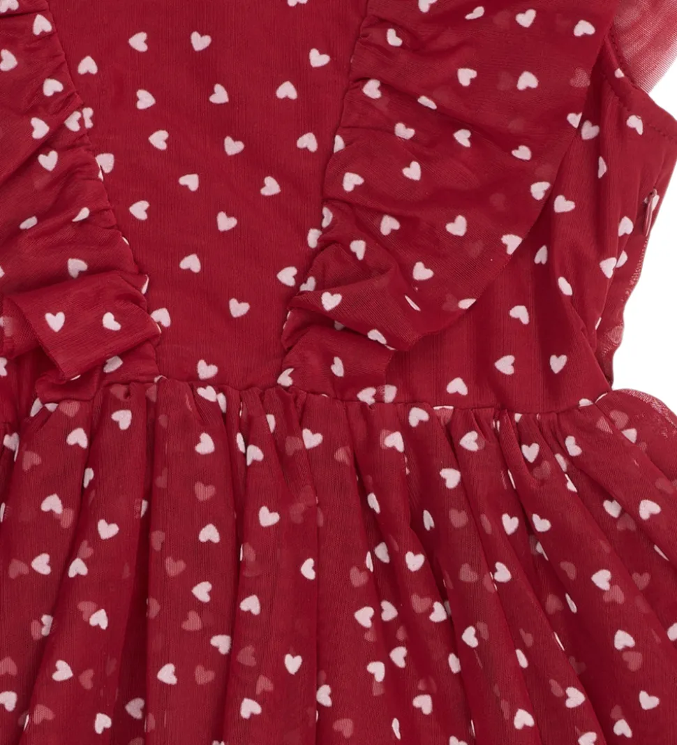 Elegant The New tylkjole i en dyb, rød nuance med hjerteprint i rosa. The New tylkjolen har voluminøse flæseærmer og et skørt med flere lag tyl, der giver et let og luftigt look.